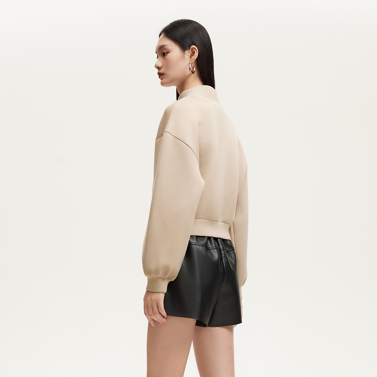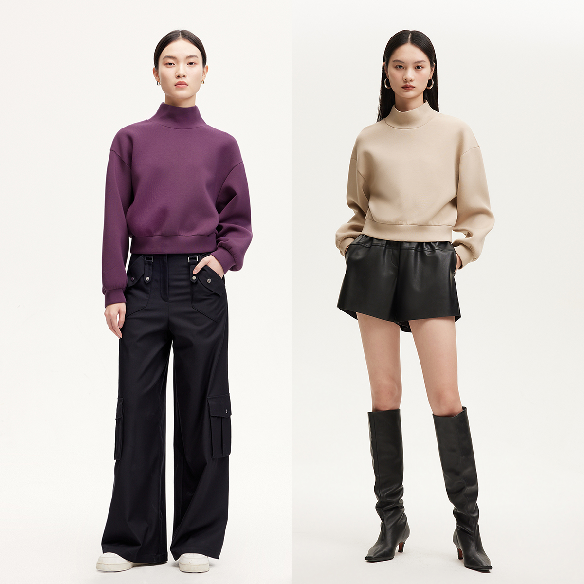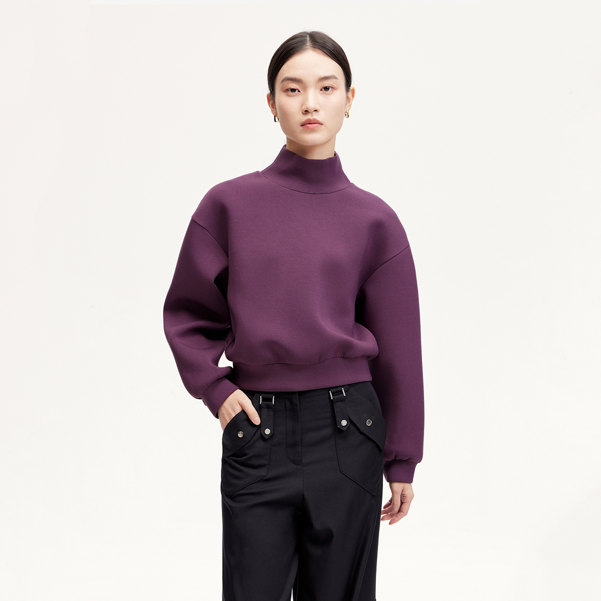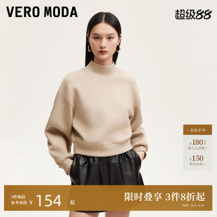Vero Moda卫衣女24秋季新款纯色高领落肩袖短款上衣简约百搭通勤