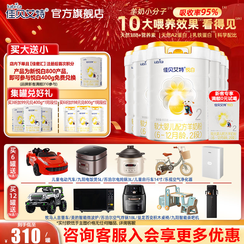 佳贝艾特悦白较大婴儿羊奶粉2段800克荷兰原装进口6罐 旗舰店