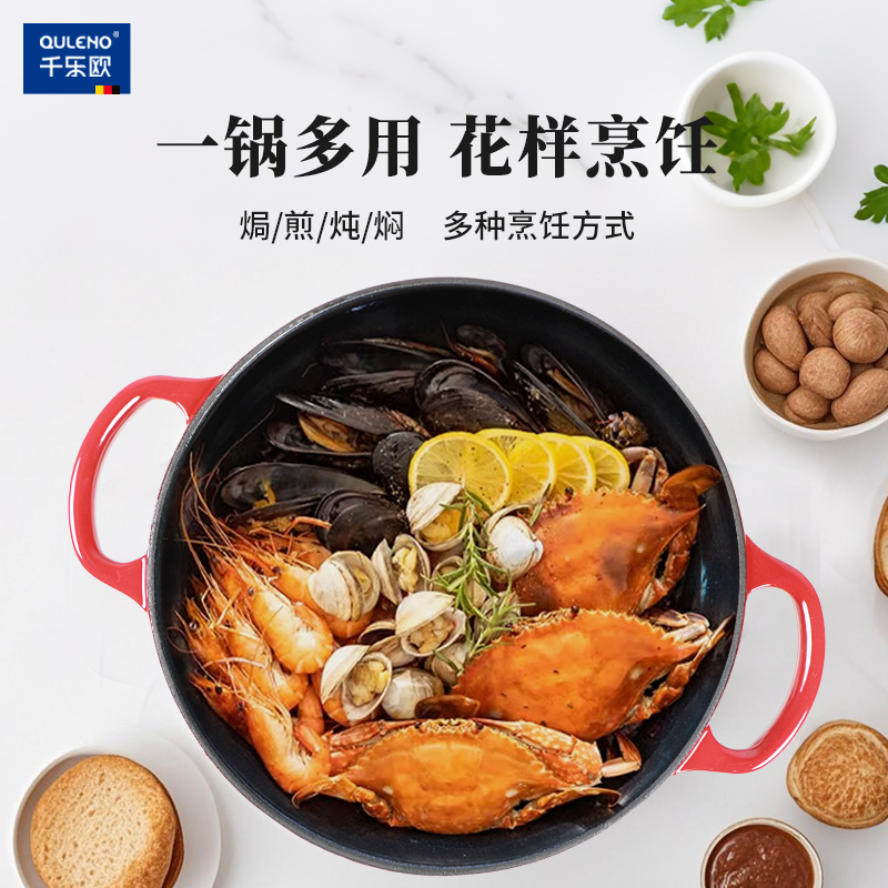 千乐欧珐琅锅22cm星星小炒锅多功能炖煮锅家用汤锅不挑灶具通用锅