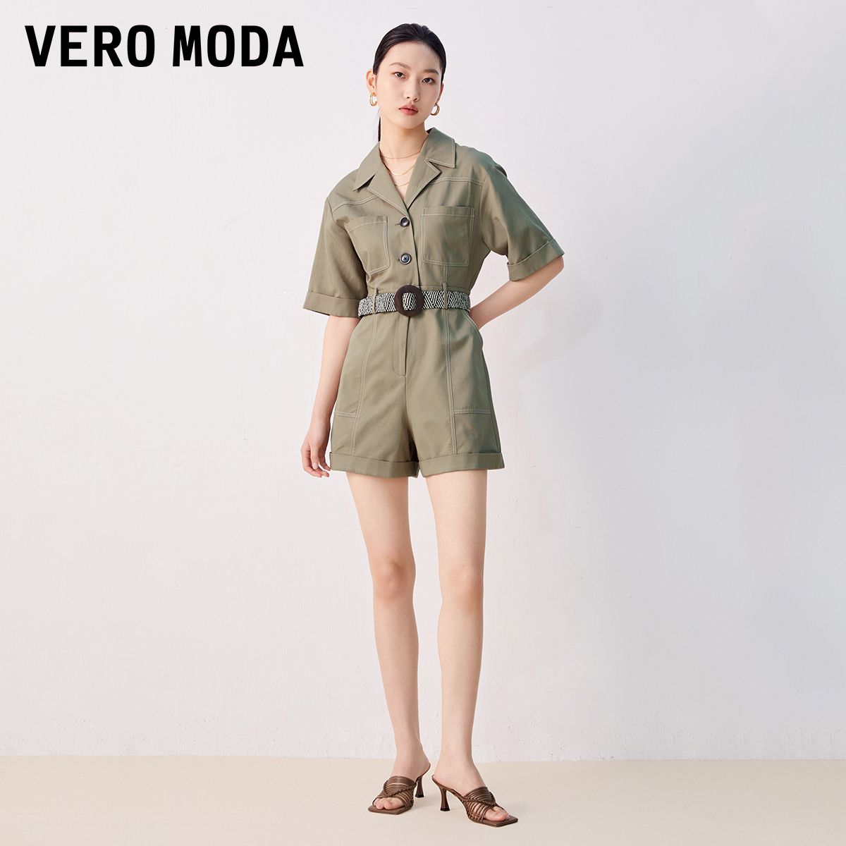Vero Moda奥莱连体短裤子女秋冬清仓翻领直筒中袖休闲简洁工装风