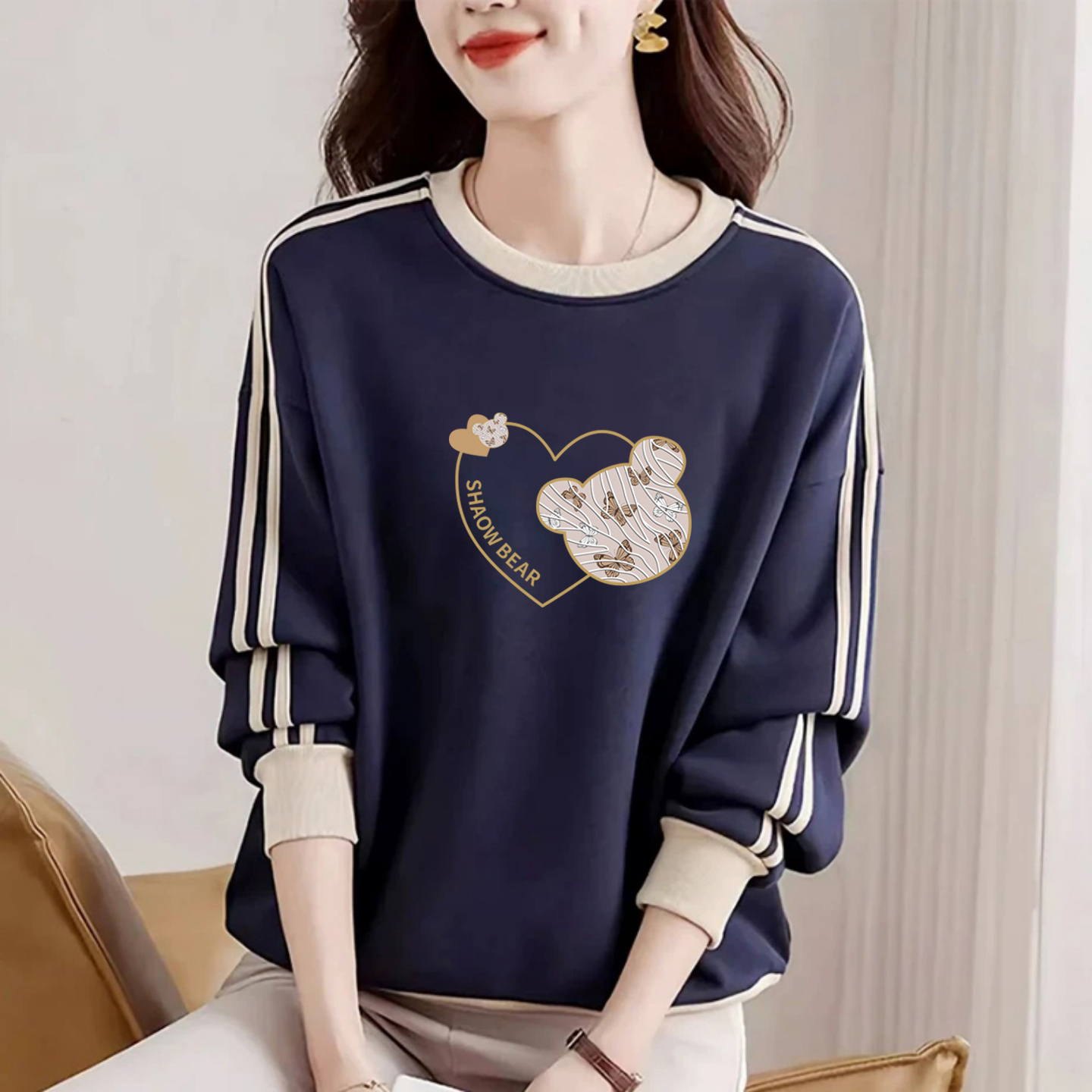 外贸出口正品女装纯棉卫衣女秋长袖打底衫时尚撞色圆领全棉上衣潮