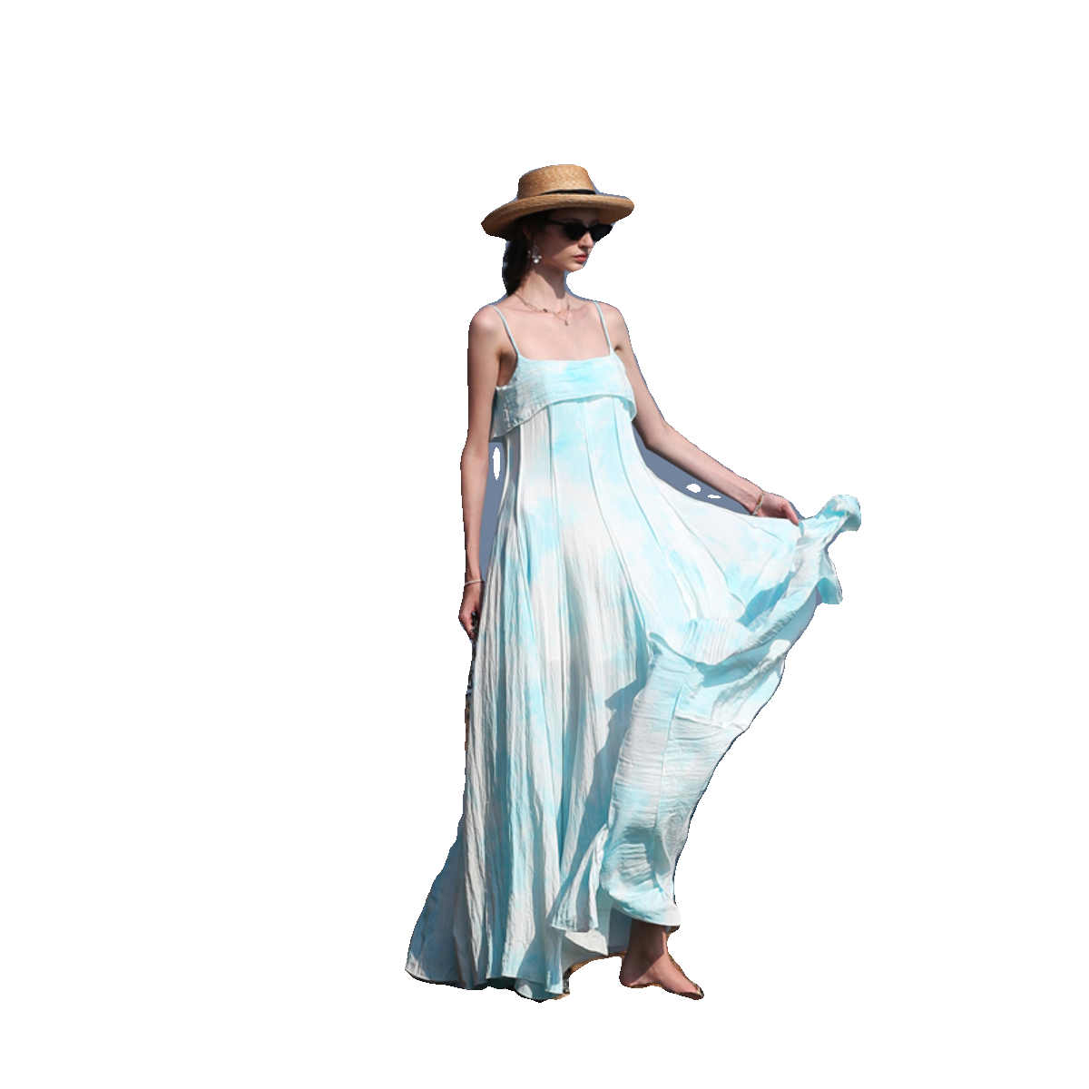 多巴胺海边度假穿搭拍照绝美大摆吊带连衣裙高级感沙滩海景印花裙