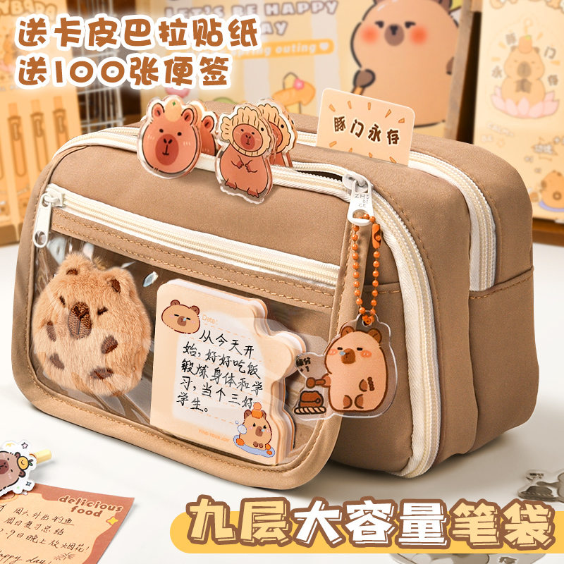 新款卡皮巴拉笔袋女小学生女童高颜值大容量文具盒初中生儿童女孩款超大铅笔盒2025版创意多功能女生用男孩款
