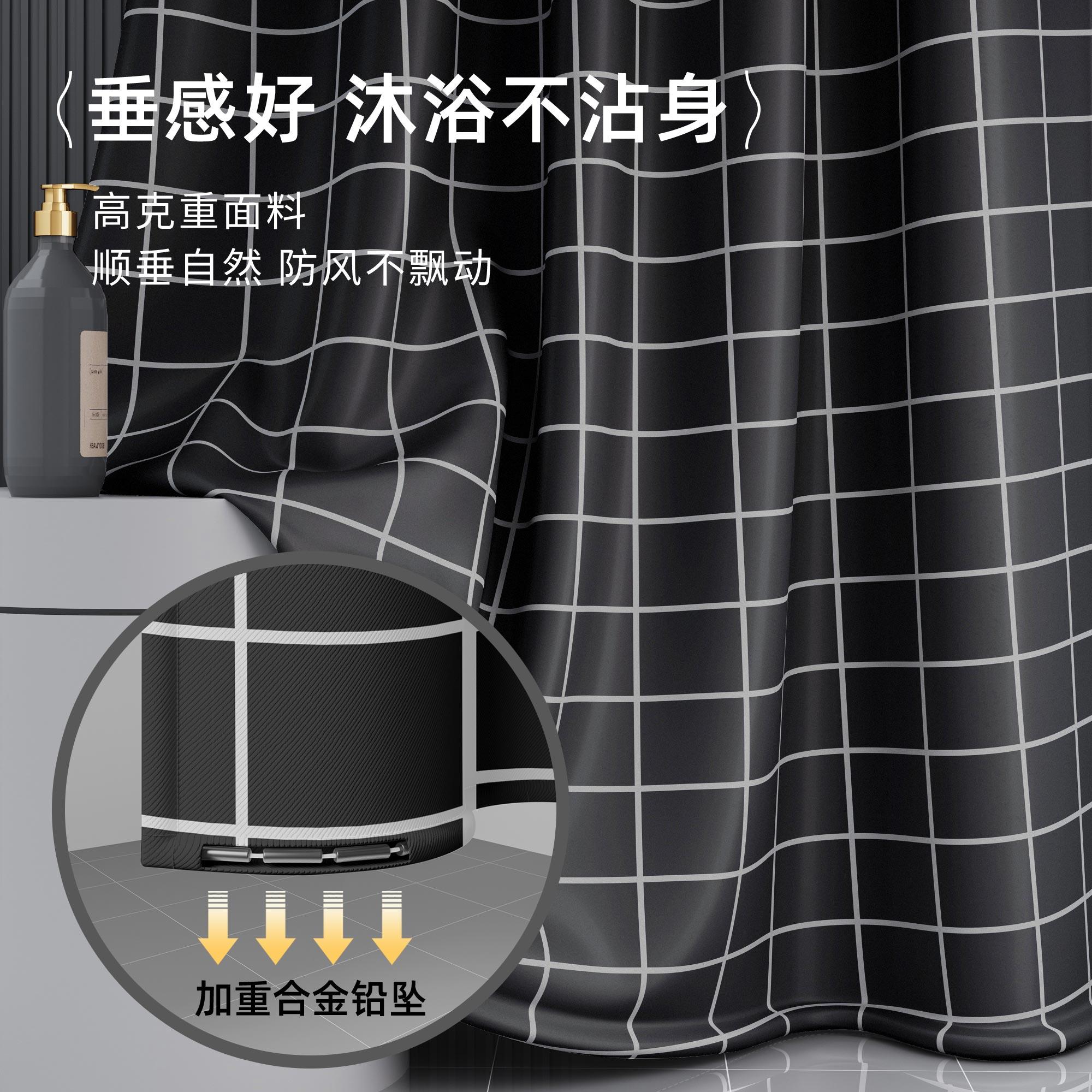 浴室浴帘加厚防水防霉浴帘布化妆室浴帘套装免打孔深色窗帘隔断窗