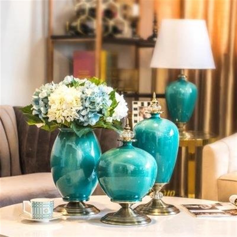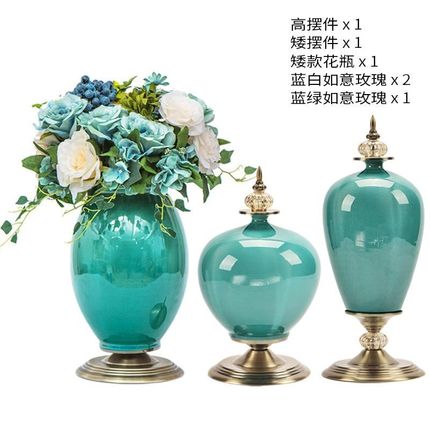 欧式家居摆件客厅个性创意装饰工艺品餐桌插花绿色陶瓷花瓶摆件