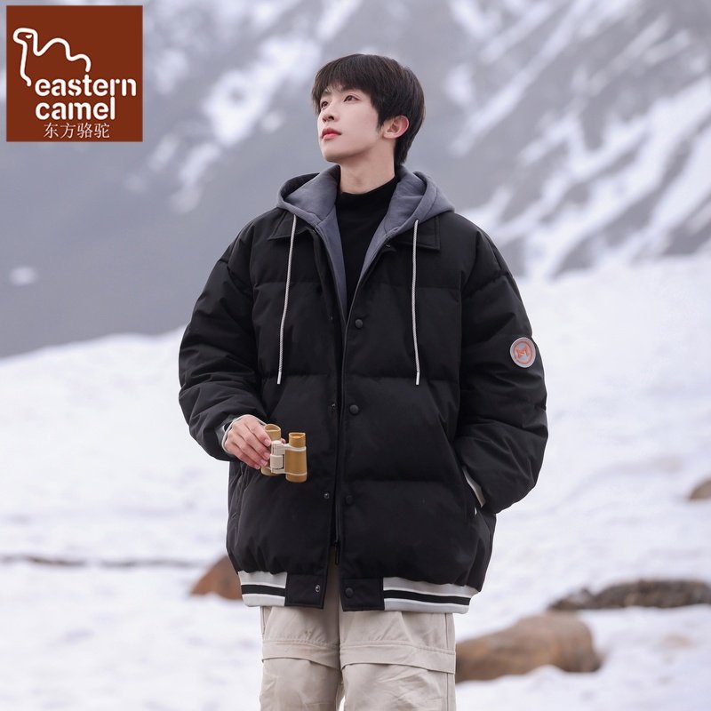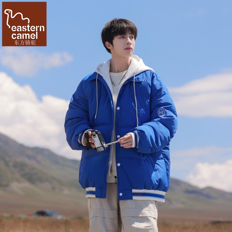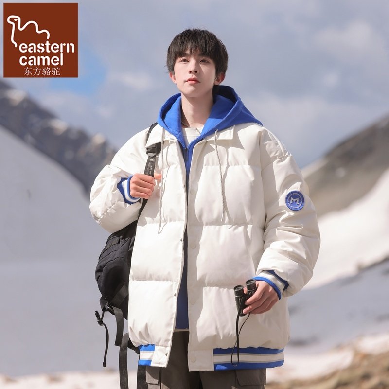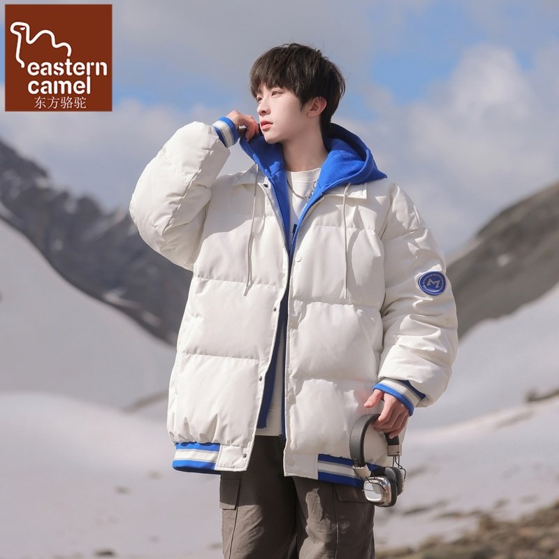 青少年假两件连帽撞色羽绒服男冬季宽松潮流羽绒外套男百搭时尚款