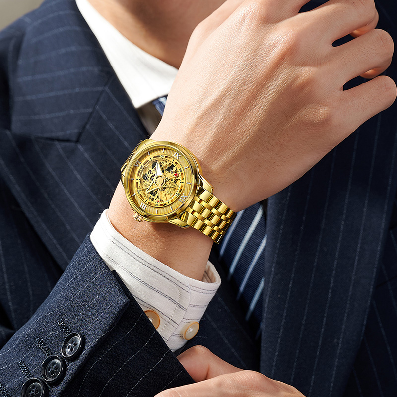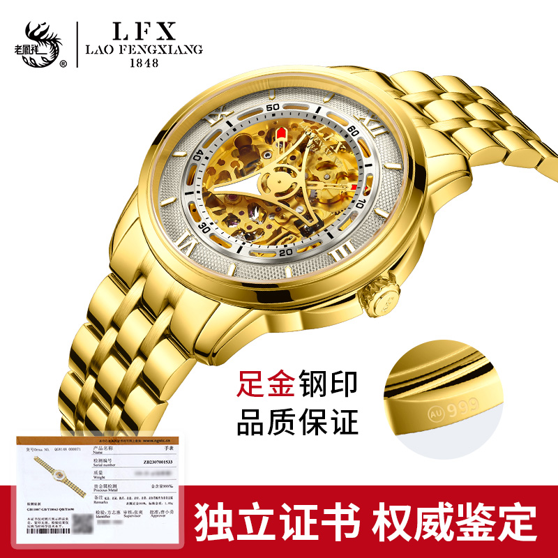 LFX/老凤祥手表旗舰店足金男士机械腕表商务防水送老公父亲正品