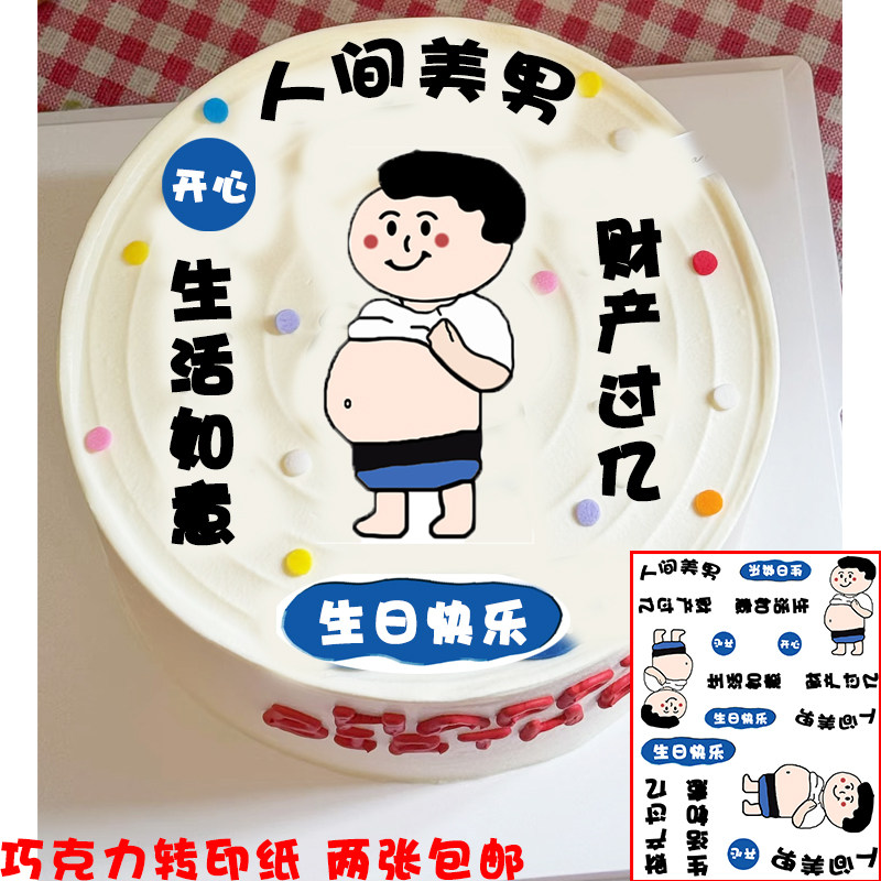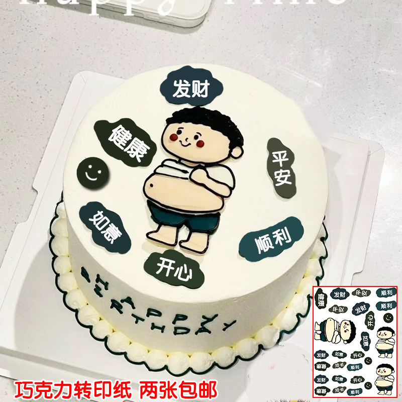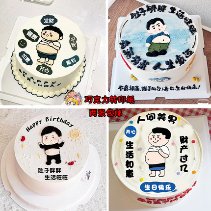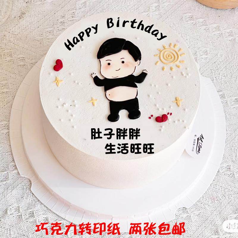 肚子胖胖生活旺旺巧克力转印纸大肚腩老爸父亲节生日蛋糕装饰
