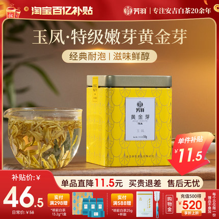 2025年新茶芳羽白茶黄金芽正宗安吉特级白茶黄金叶绿茶罐装50g