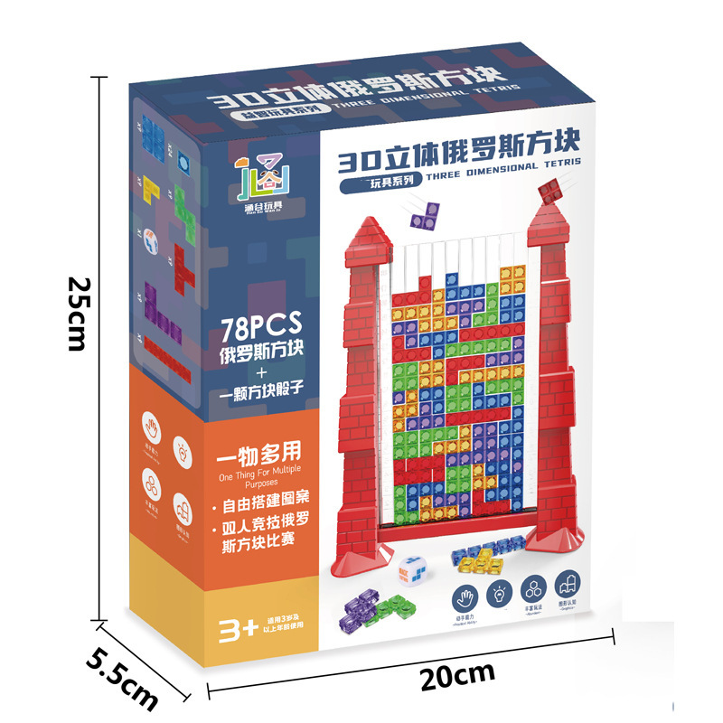 3D立体俄罗斯方块拼图积木水晶质感逻辑思维训练亲子互动益智玩具
