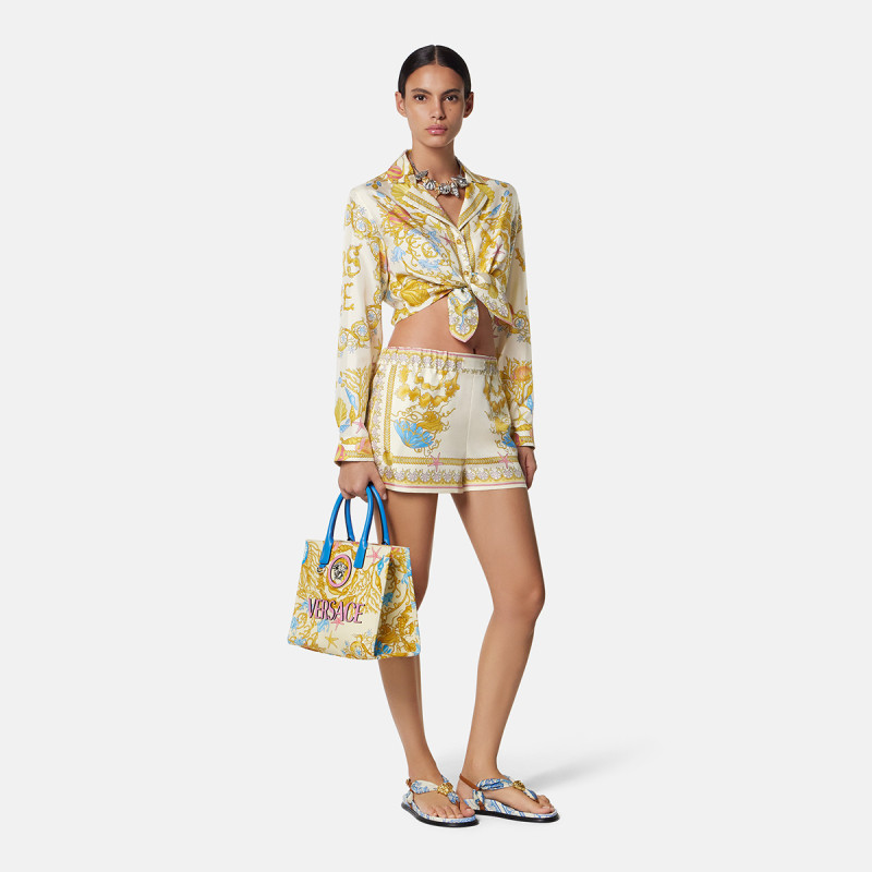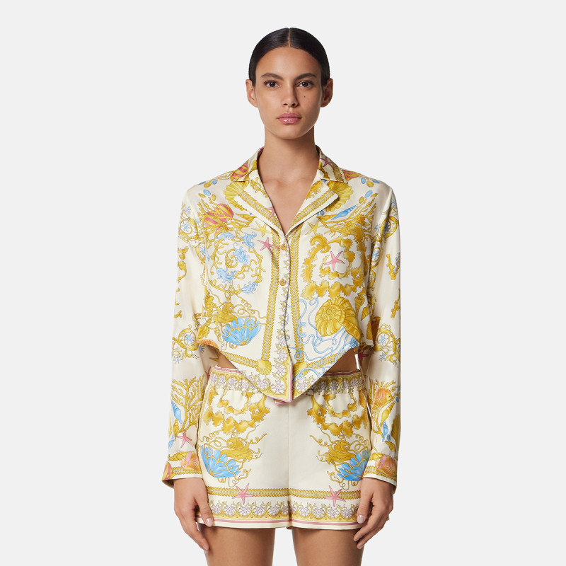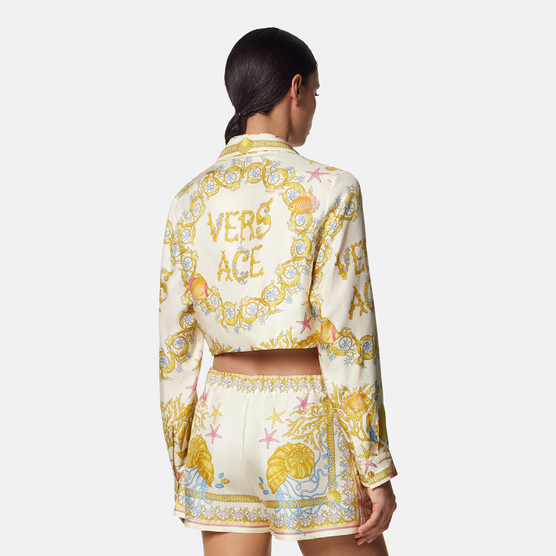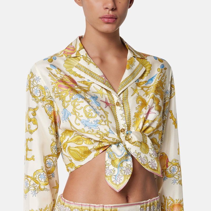 【季末优惠】VERSACE/范思哲 UnderwaterBarocco扭结短款真丝衬衫