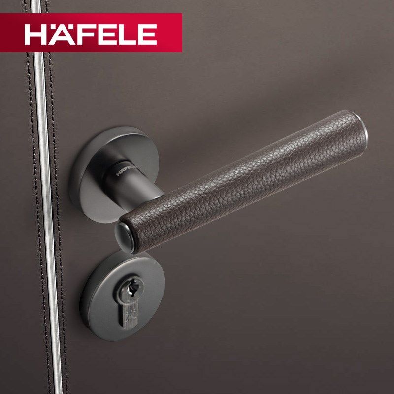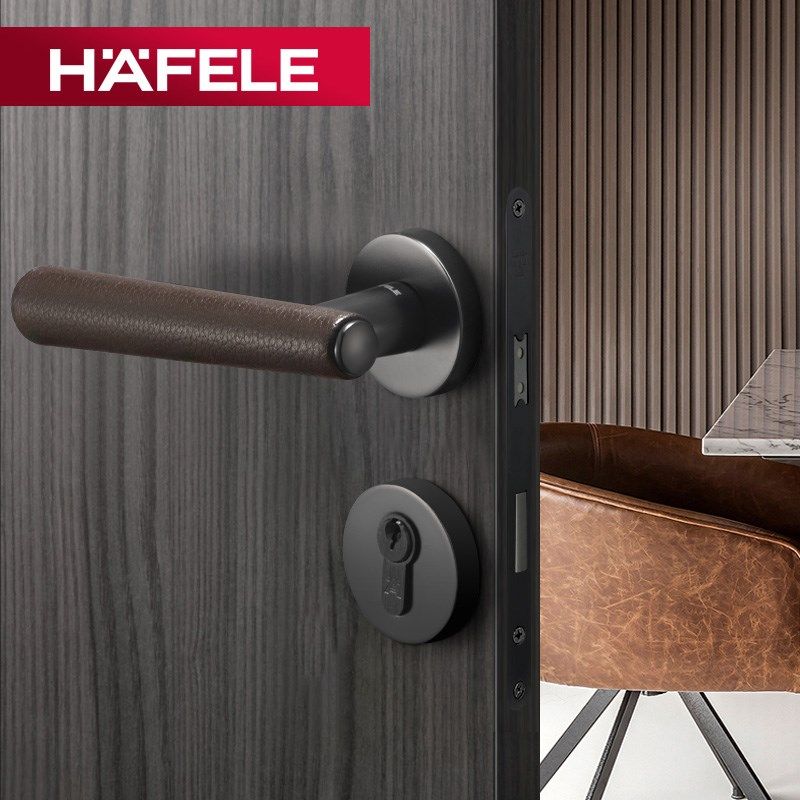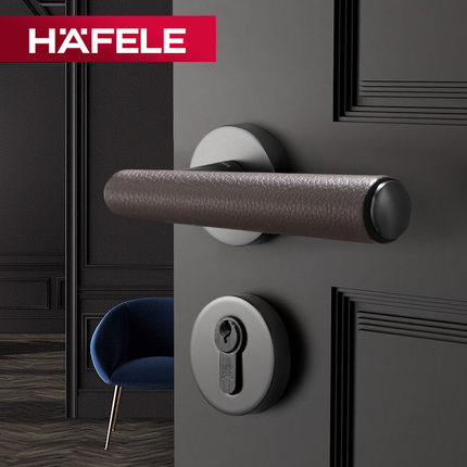 德国海福乐HAFELE卧室房门现代简约黑色皮革实木门分体式静音门锁