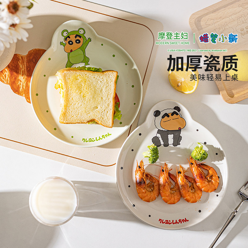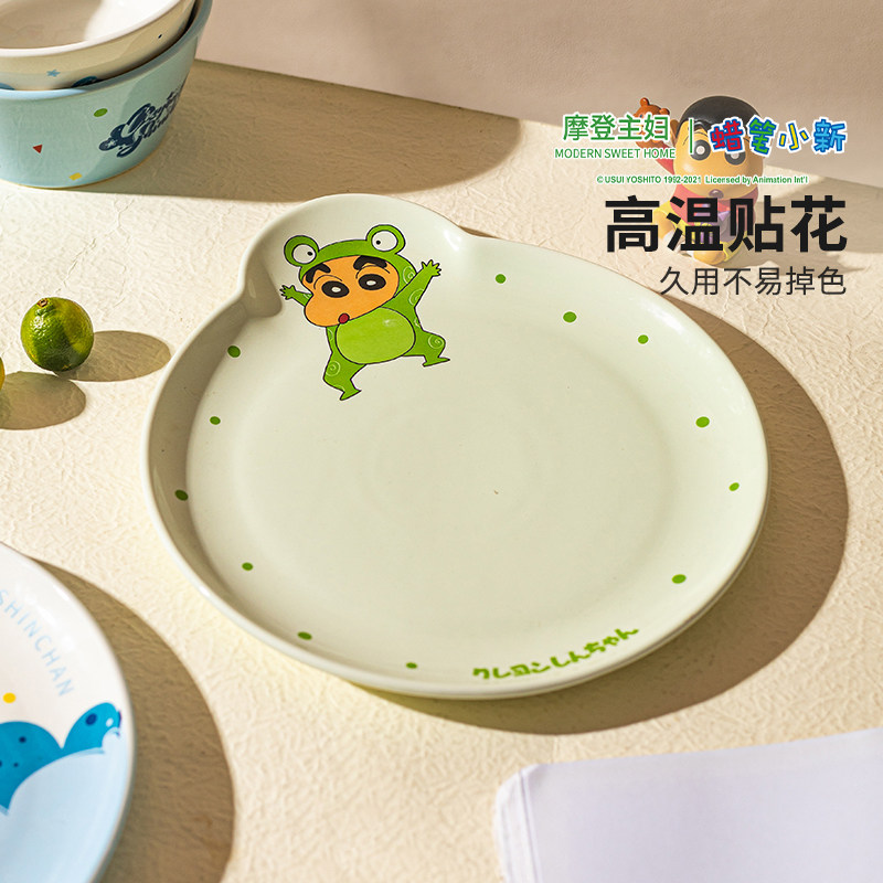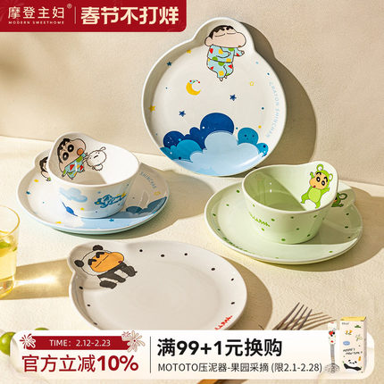 【摩登主妇&蜡笔小新】饭碗盘子家用酸奶碗具可爱餐具儿童早餐盘