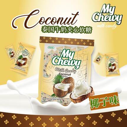 mychewy泰国椰子夹心软糖 芒果味喜糖 儿童水果味年货 榴莲味360g