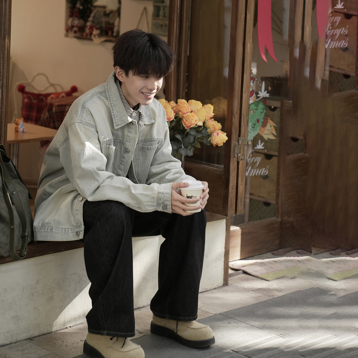 GOGOSOON水洗做旧牛仔外套男2026新款春秋夹克翻领复古青少年廓形