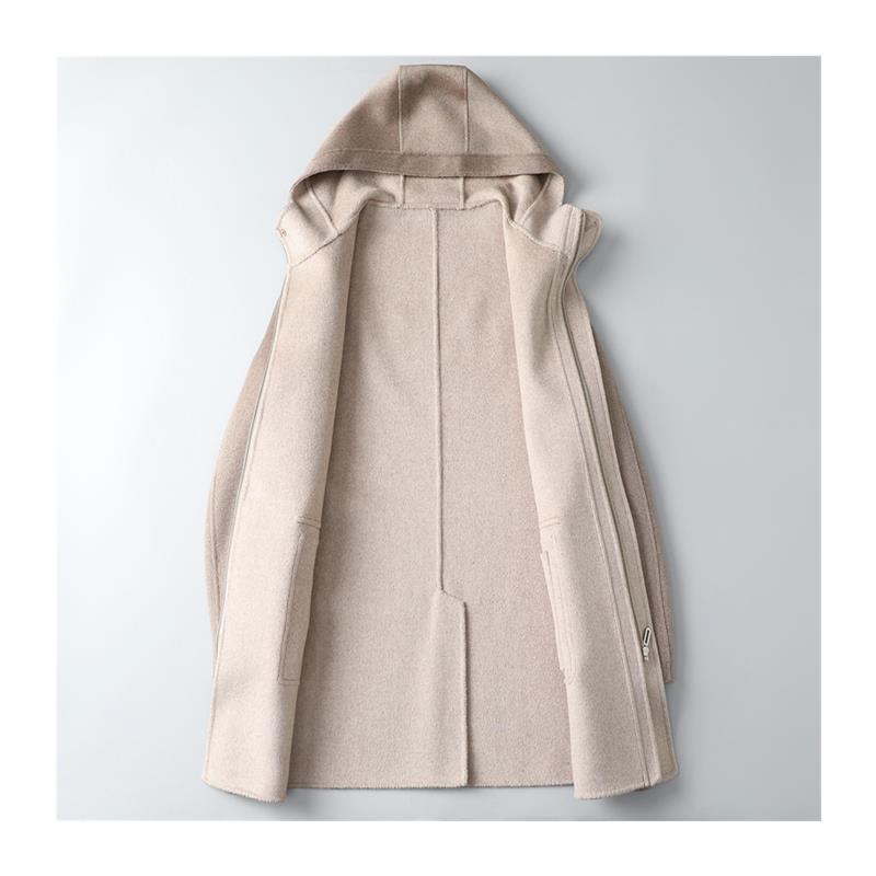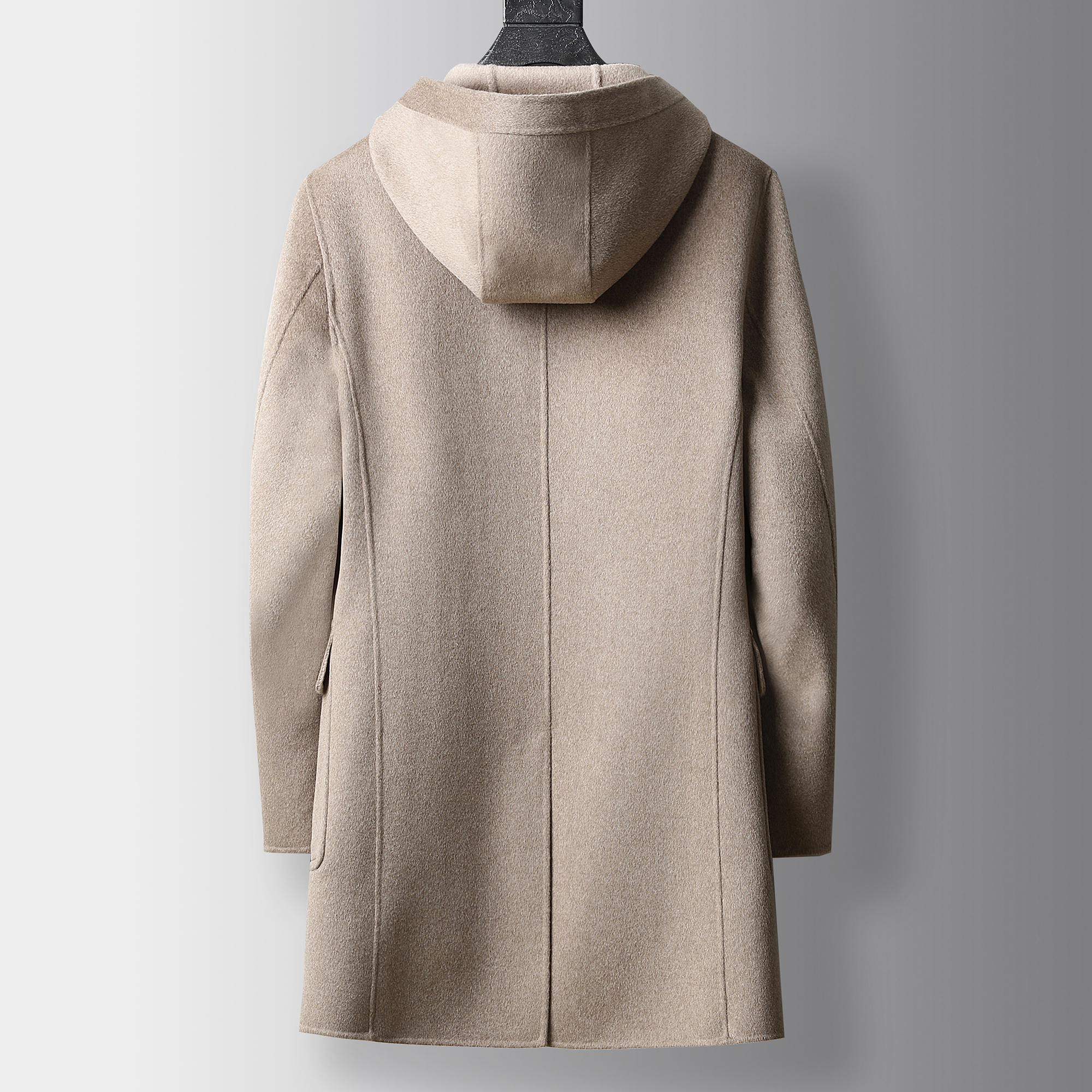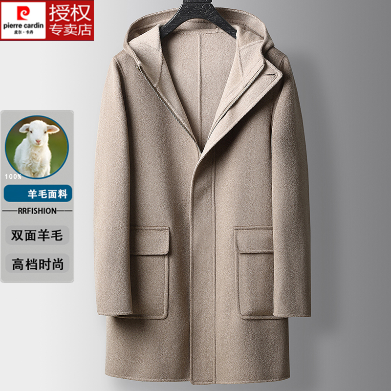 皮尔卡丹双面100%纯羊毛呢子大衣男连帽中长款羊绒风衣青中年外套