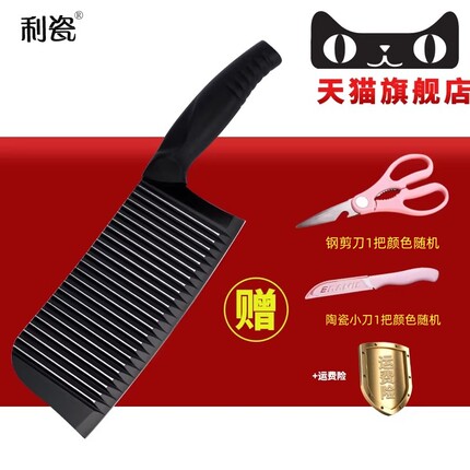 利瓷波浪纹不锈钢菜刀送陶瓷小刀