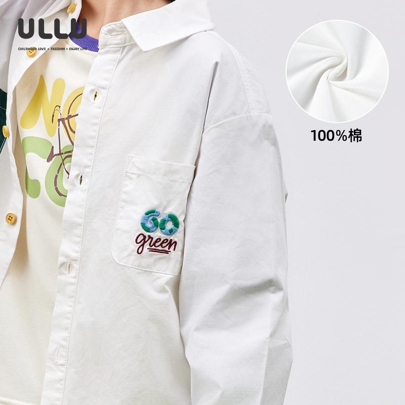 ULLU优露童装男童长袖衬衫25春款不对称拼贴口袋撞色罗纹白衬衫