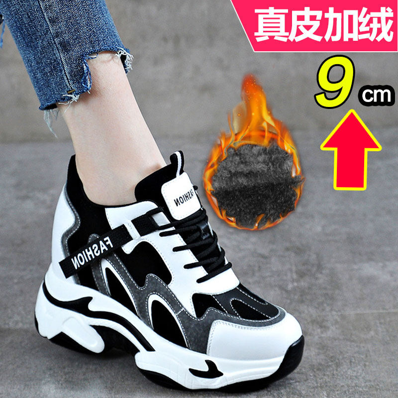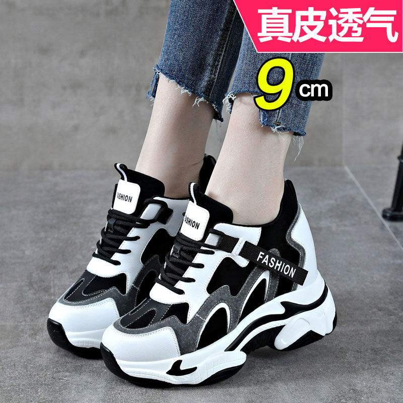 真皮2025春新款内增高老爹鞋女ins潮超火厚底百搭休闲透气女单鞋
