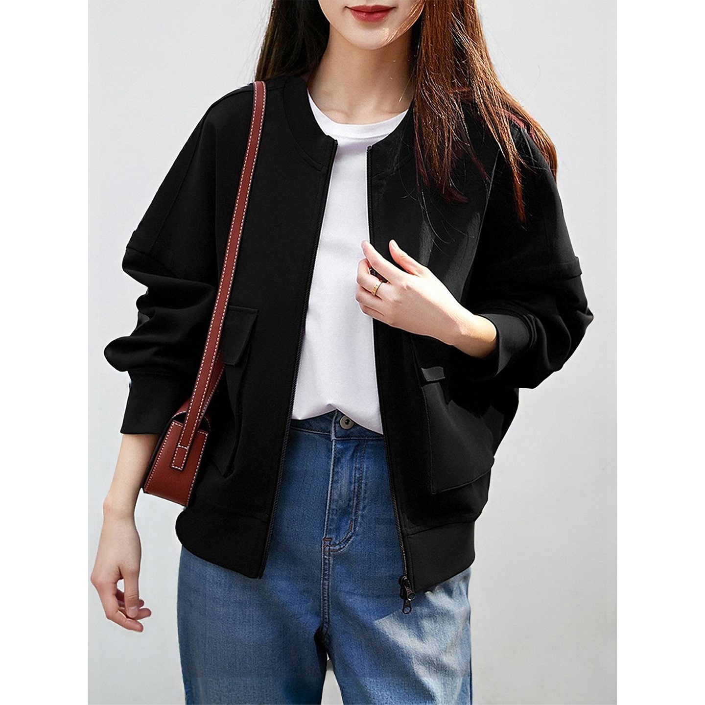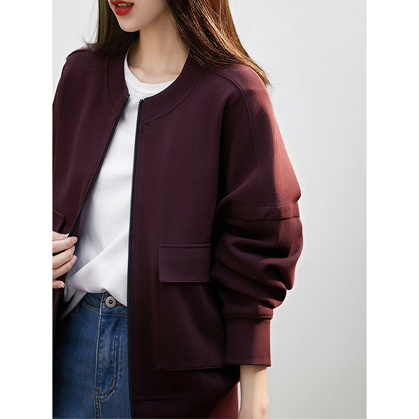酒红色圆领夹克外套女2025秋冬新款高级感工装棒球服短款休闲上衣