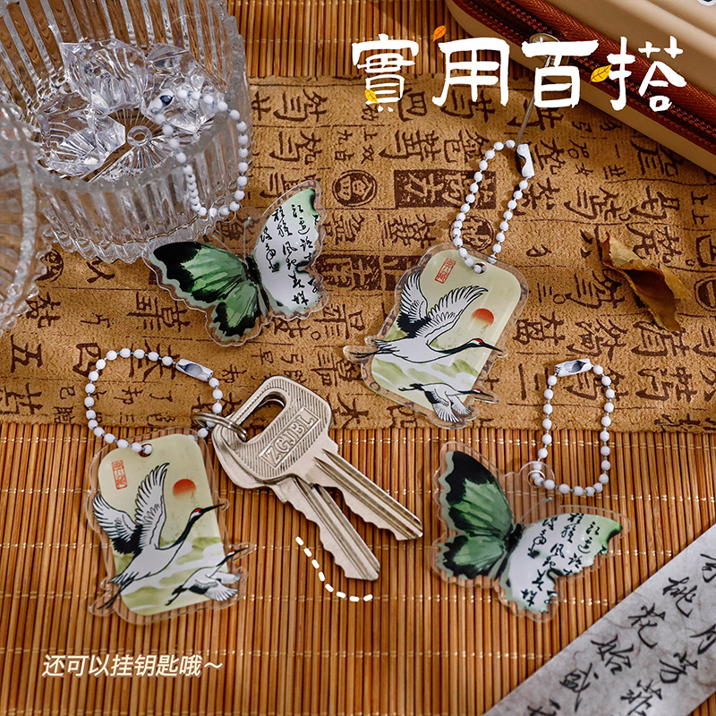 复古风蝴蝶钥匙扣创意新中式仙鹤钥匙链高颜值亚克力笔袋包包挂件
