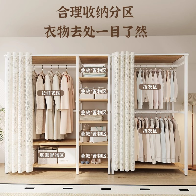 衣帽架落地卧室挂衣架防尘衣柜架子家用组装金属开放式衣架置物架