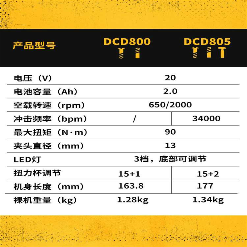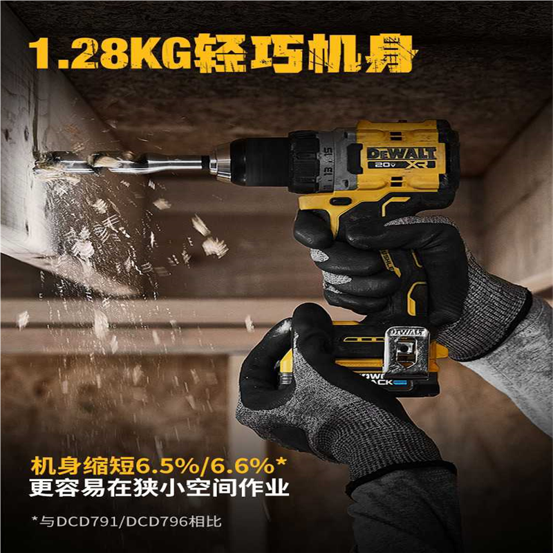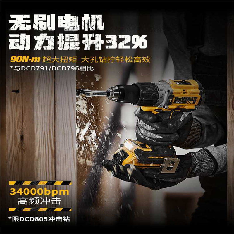 DEWALT得伟20V刷紧凑型90牛米手电钻791升级款DCD800/805冲击钻