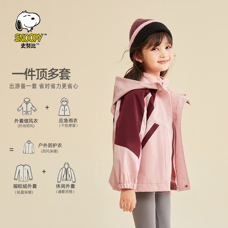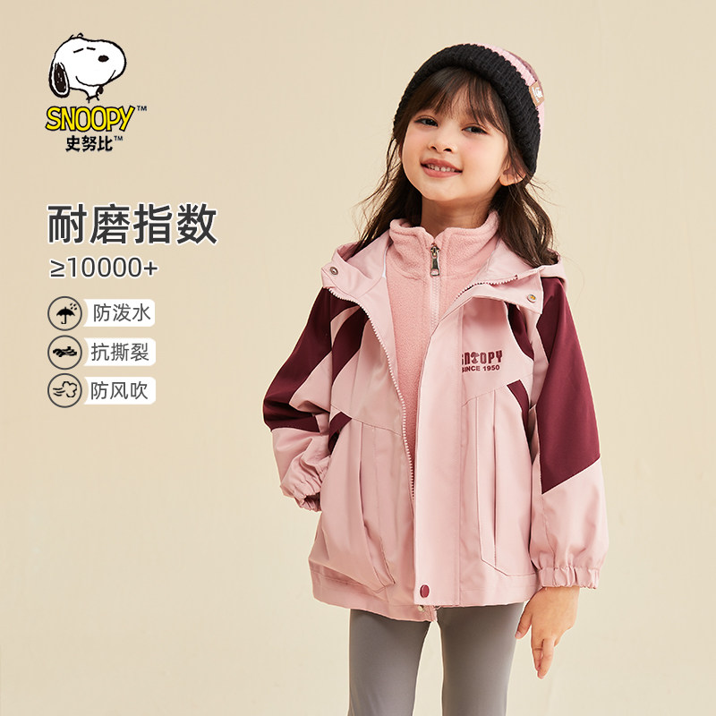 史努比女童外套2025新款春秋款洋气三合一防风防水早秋儿童装外套
