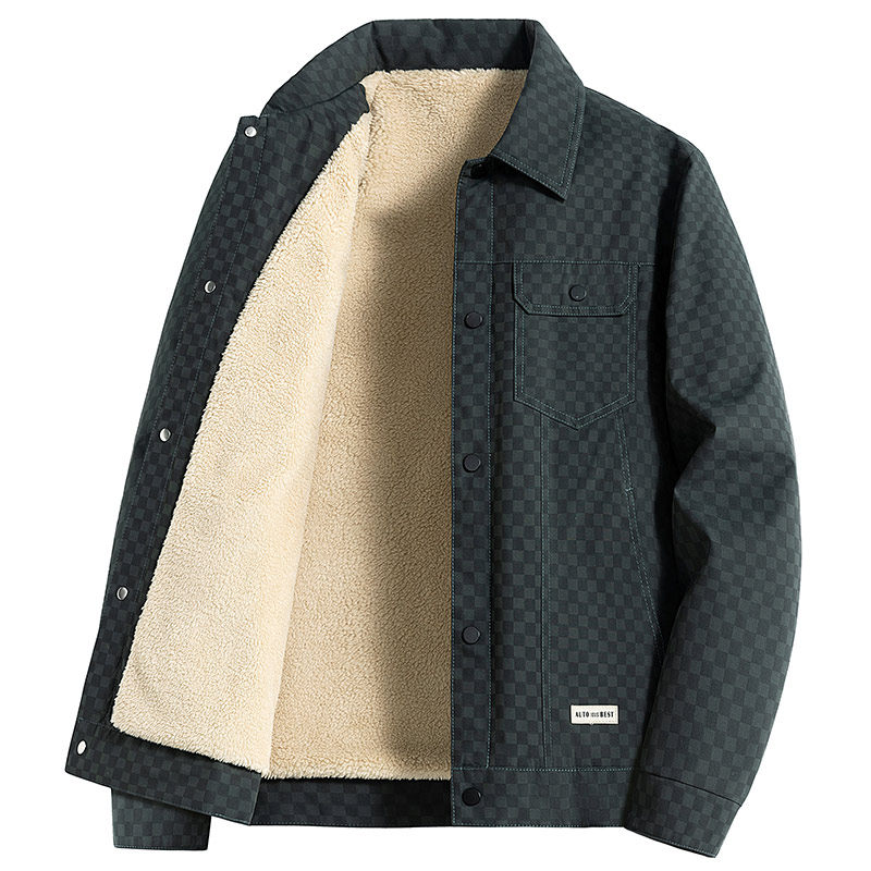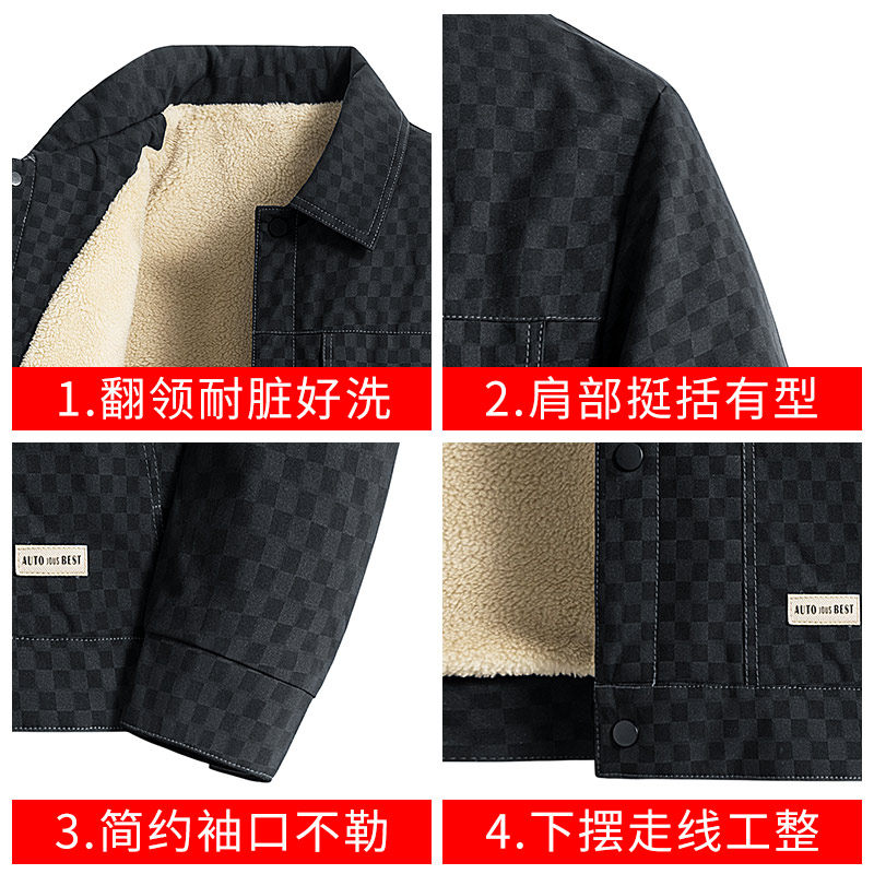 罗蒙男士夹克休闲翻领男装加绒加厚上衣冬季新款格子潮流工装外套