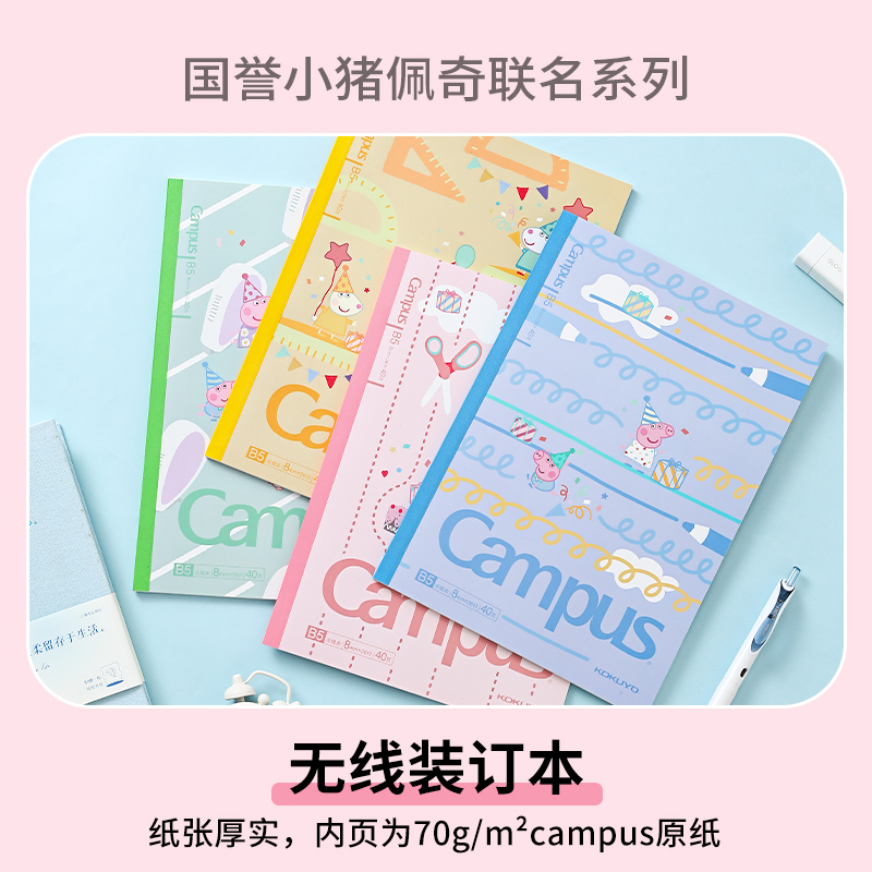 【小猪佩奇20周年庆典】日本kokuyo国誉B5笔记本子学生用卡通动漫可爱修正带笔袋文件袋书包尺子联名文具合集