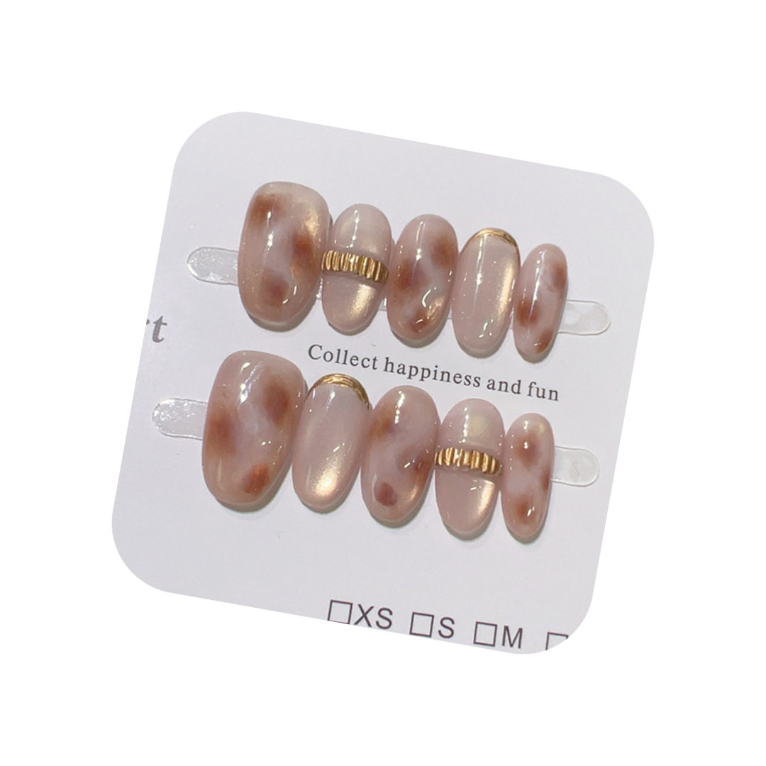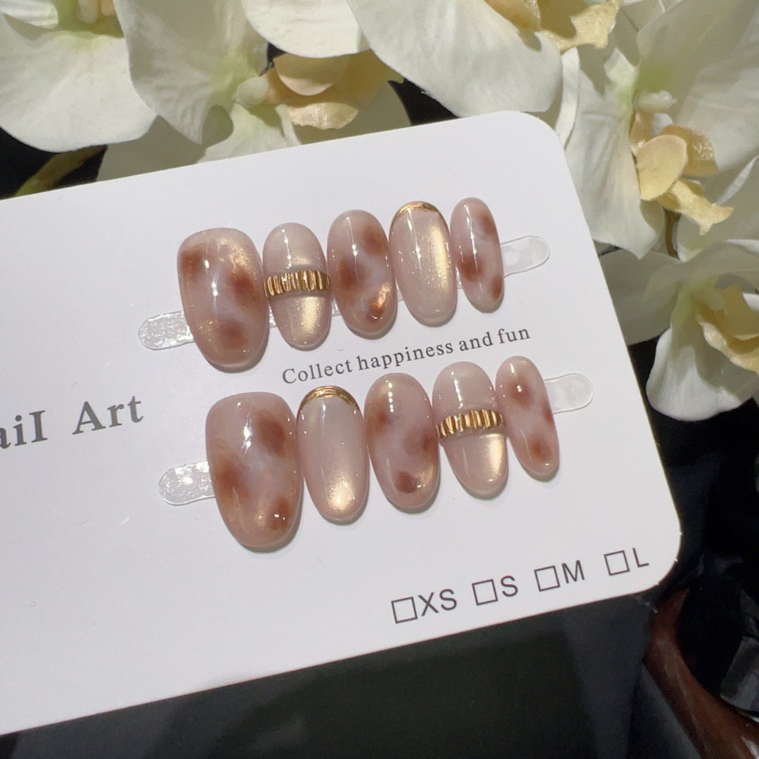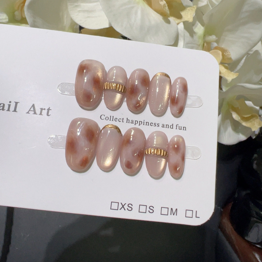 【金镶玉影】蜜桃玉髓晕染金饰线条温柔风粉糯玛瑙清透感手工美甲