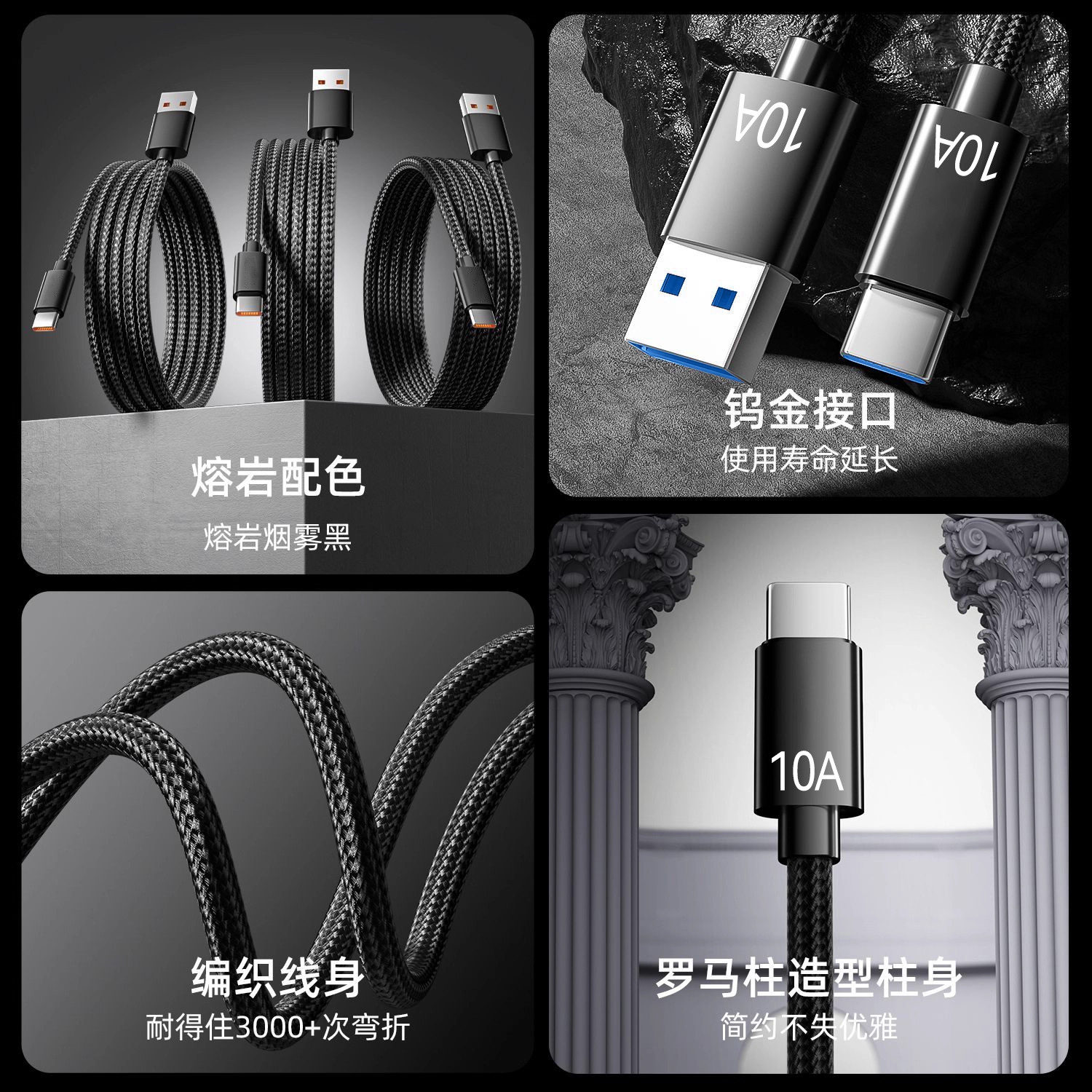 Type-C数据线240W超级快充10A适用华为p70mate60pro荣耀v50小米VIVOPP通用手机编织闪充电线加长2米3米车载A