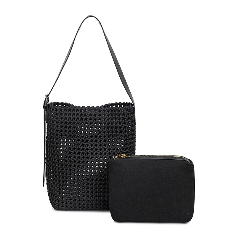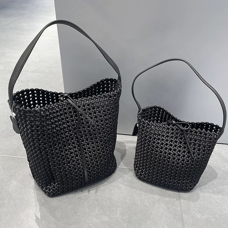 2024新款跨境潮流单肩包风车结镂空手拎水桶包大容量子母包腋下包