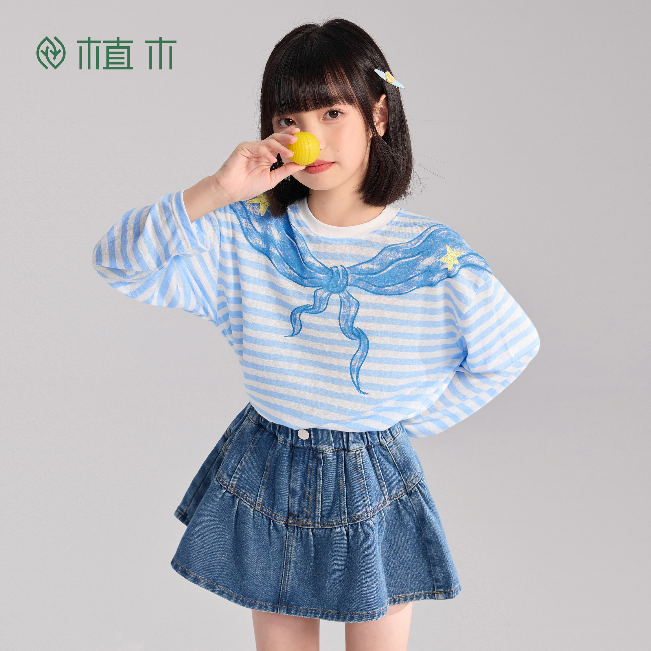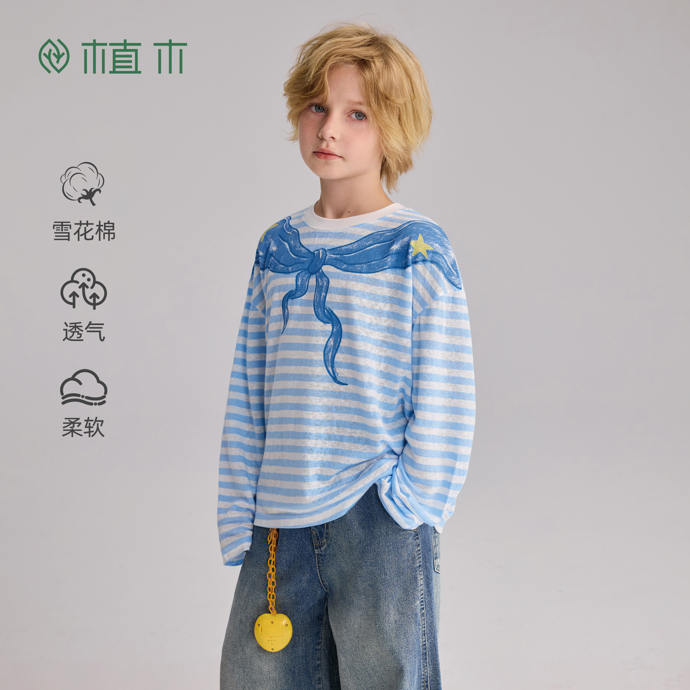 植木【海军条纹衫】儿童T恤长袖 男童女童上衣2026春季新款童装