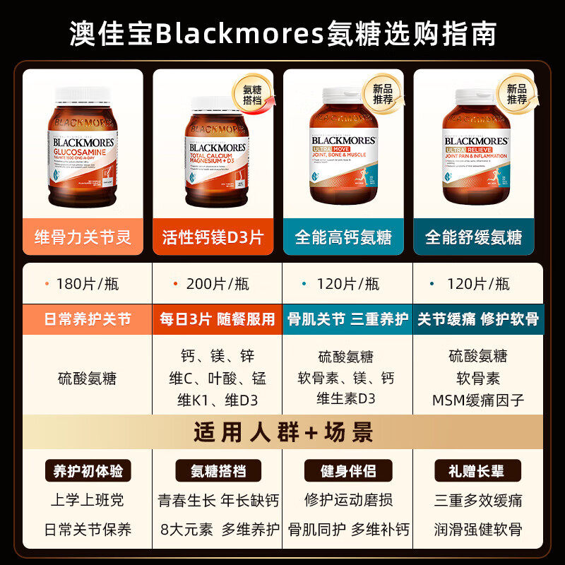 Blackmores澳佳宝三合一全能舒缓氨糖钙镁维骨力软骨素关节灵高钙