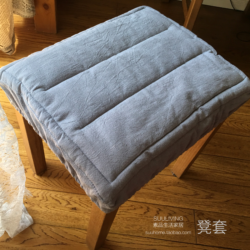 简约现代纯色棉麻透气防尘装饰凳子套松紧套坐垫椅垫布艺布料定制