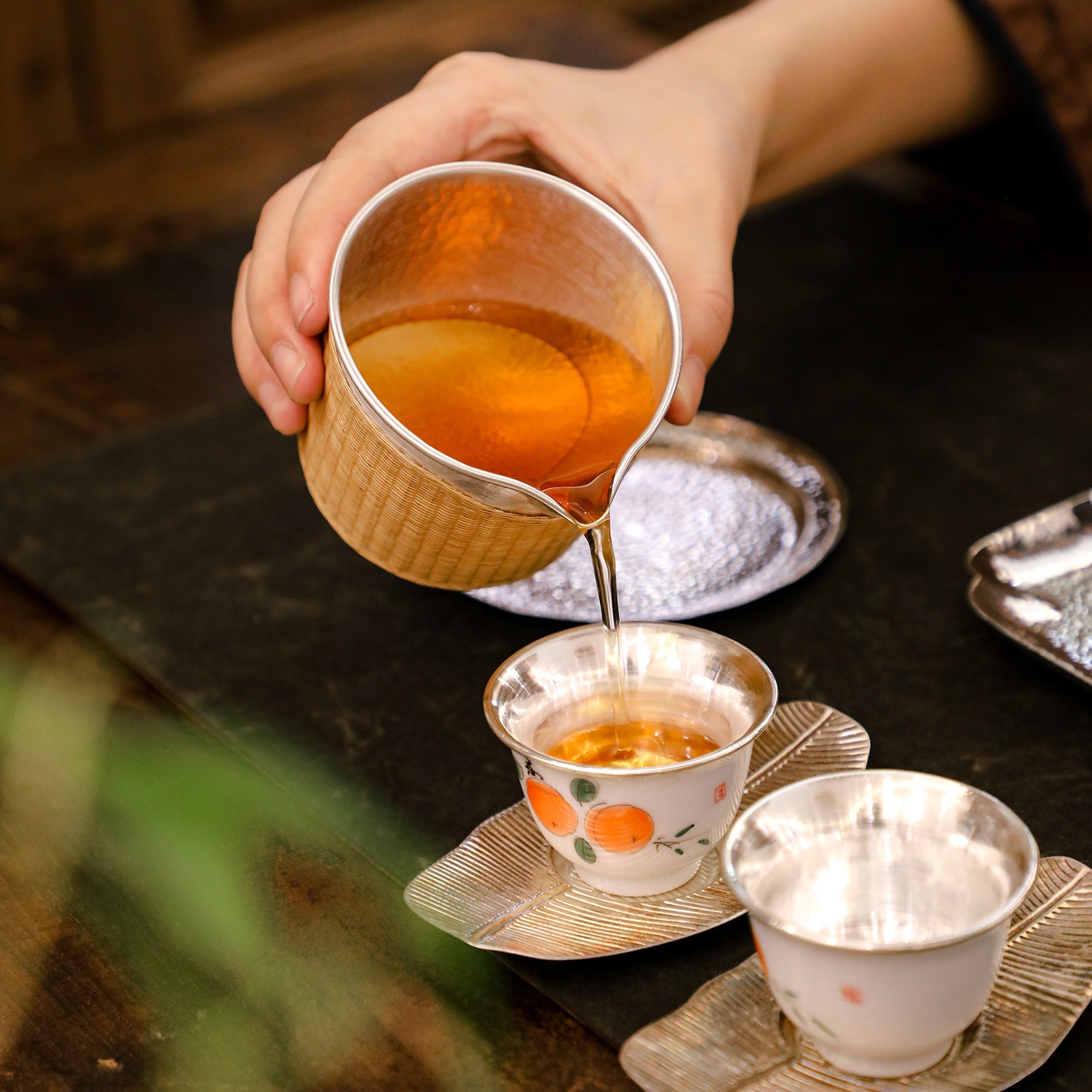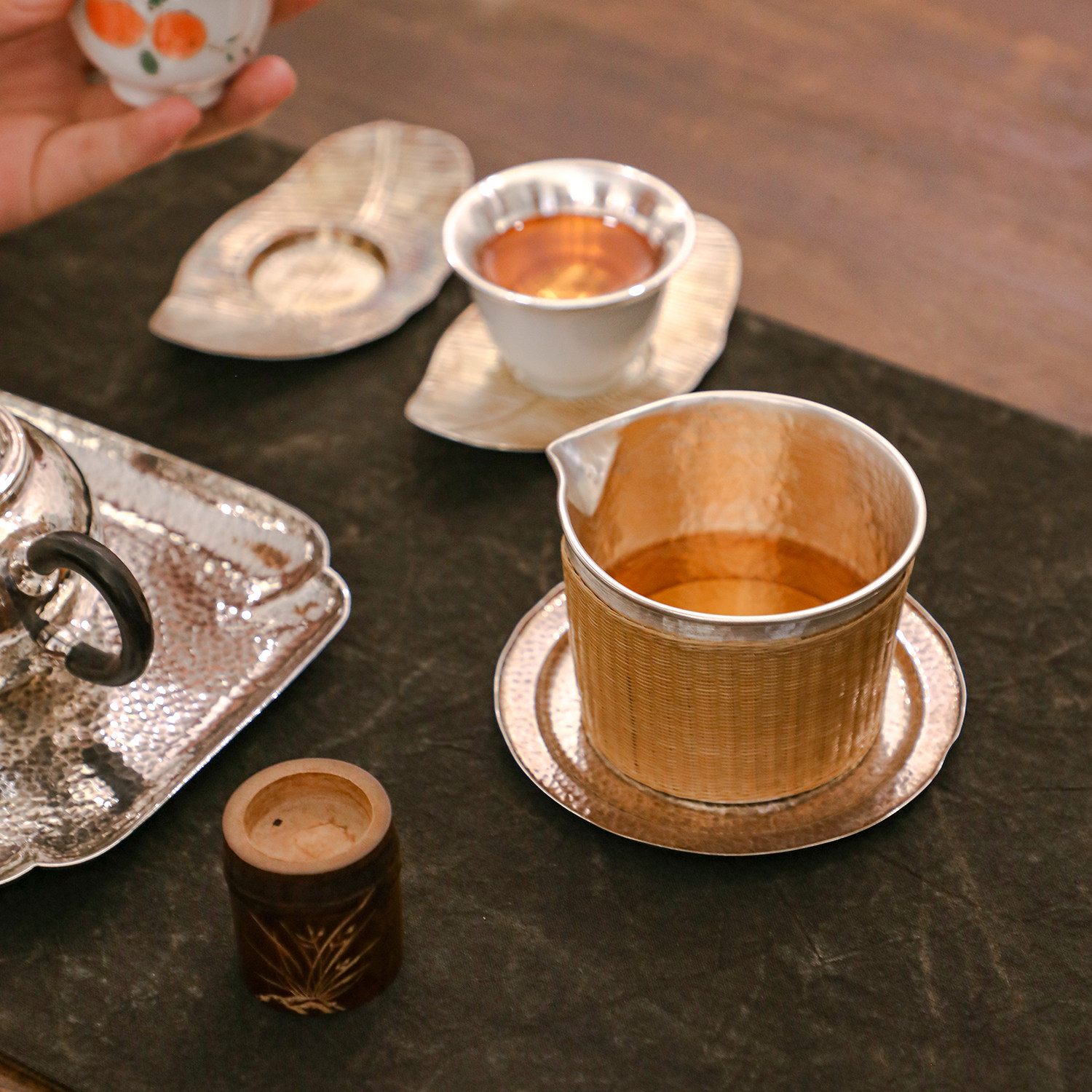 纯银时代公道杯竹编纯银