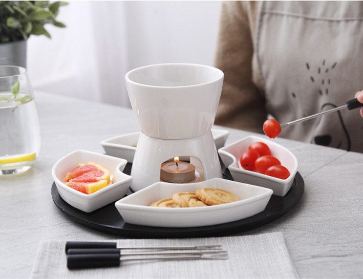 纯白陶瓷巧克力火锅套装冰淇淋哈根达斯火锅炉 DIY芝士火锅配底盘