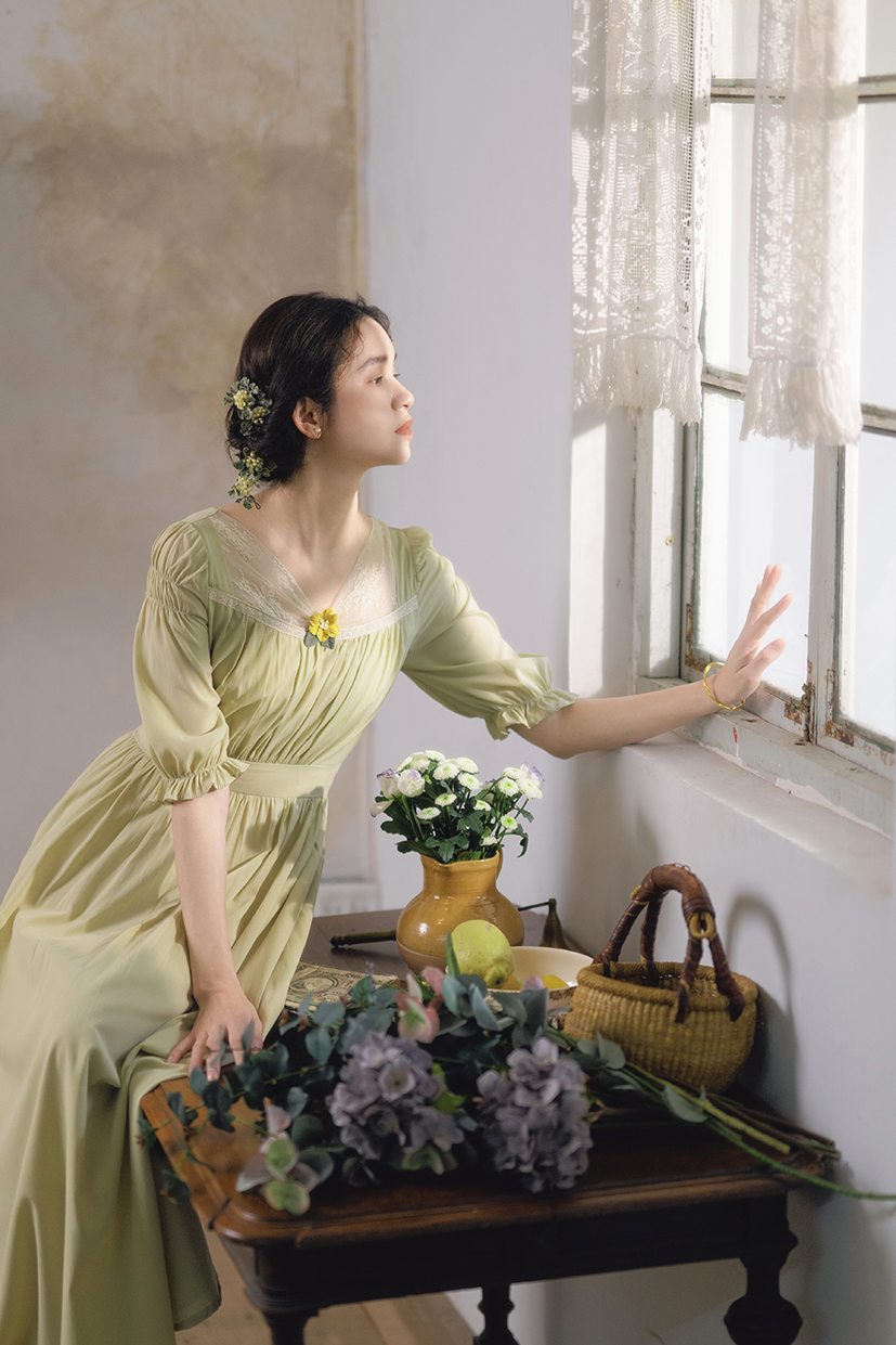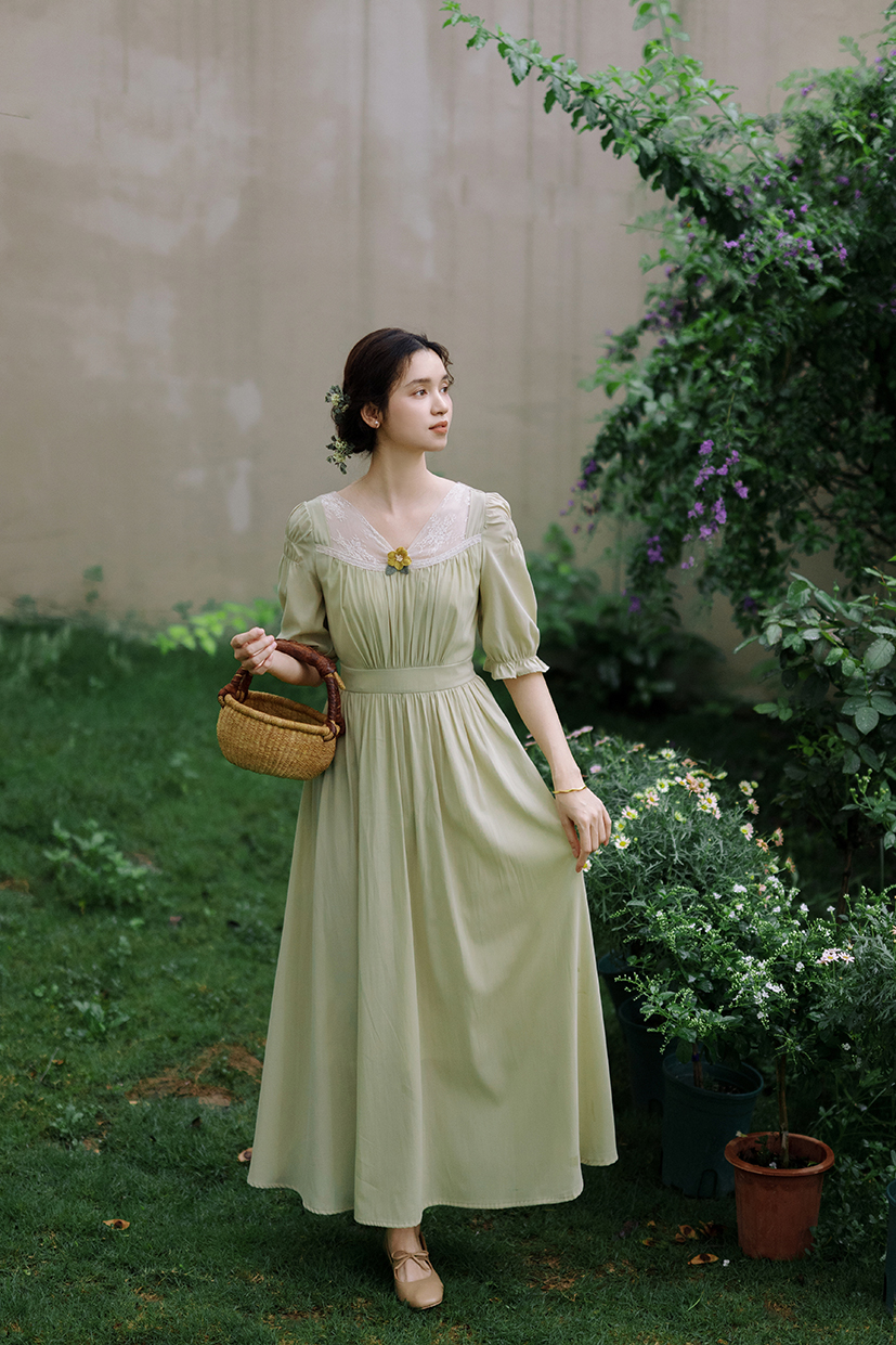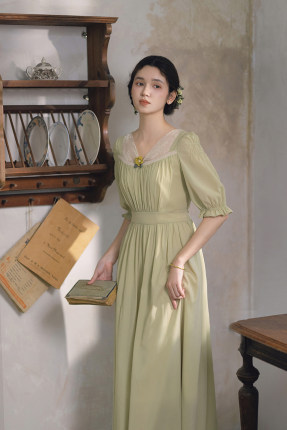 拾光裁缝 仲夏物语 古典法式优雅少女茶歇温柔蕾丝木耳边连衣裙