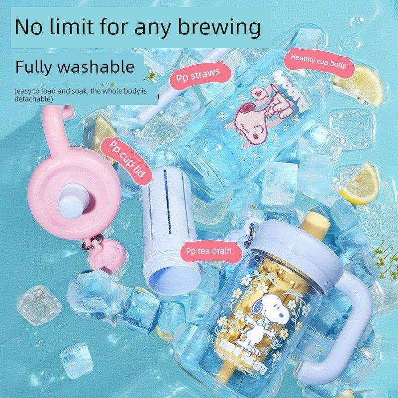 史努比玻璃杯女生夏天可爱上班族家用吸管水杯耐热泡花茶冰霸杯子
