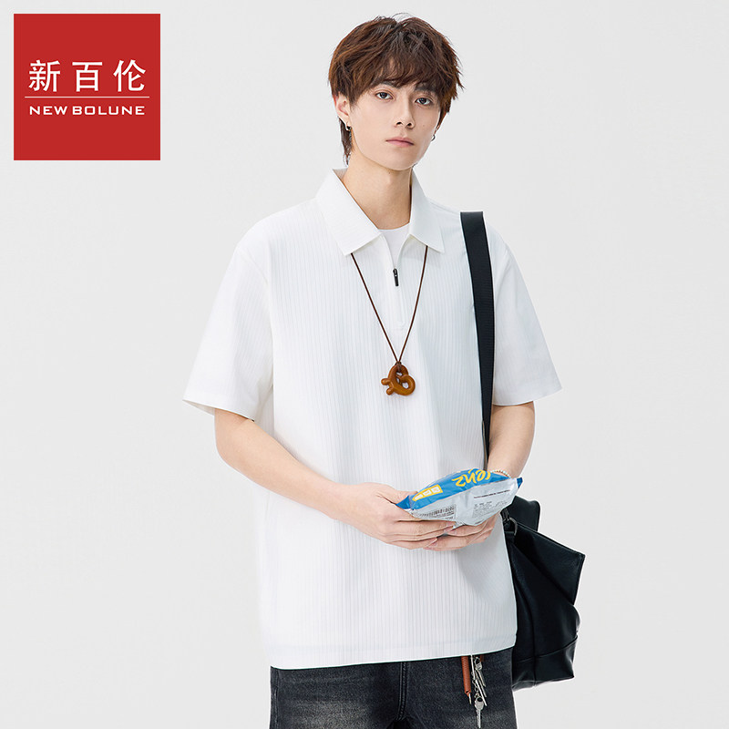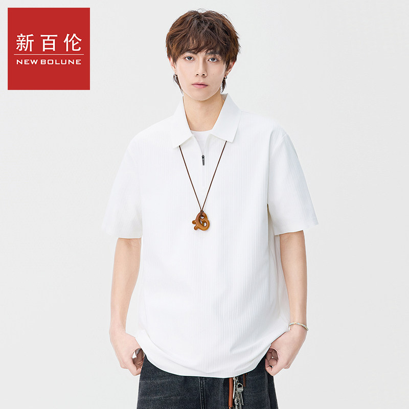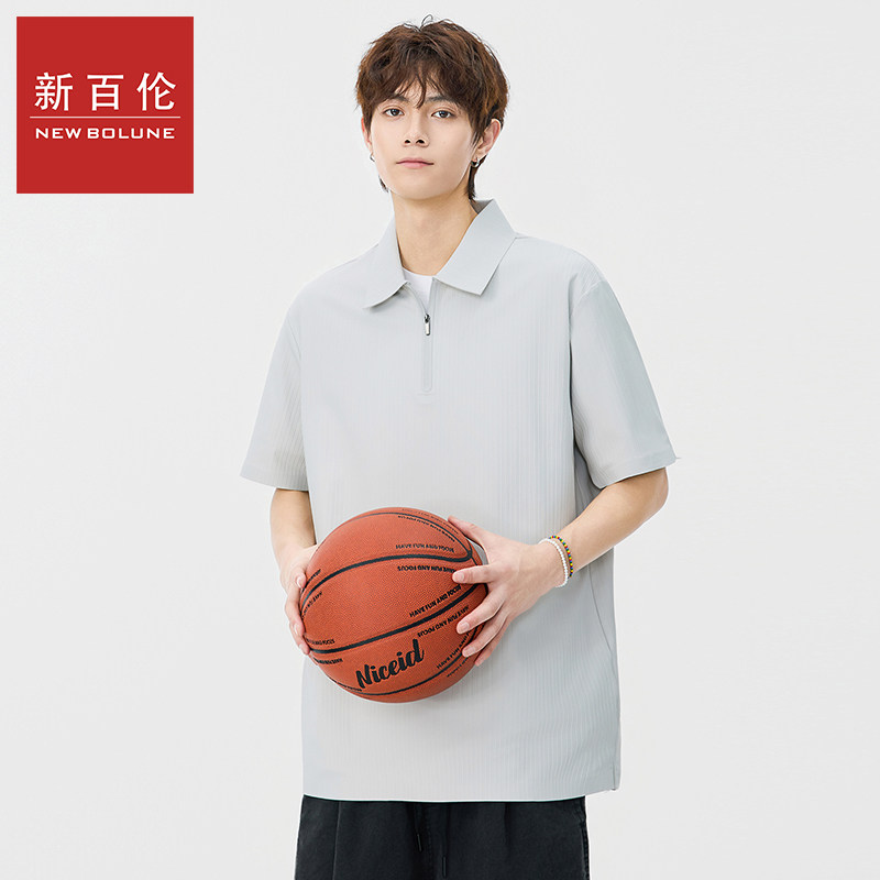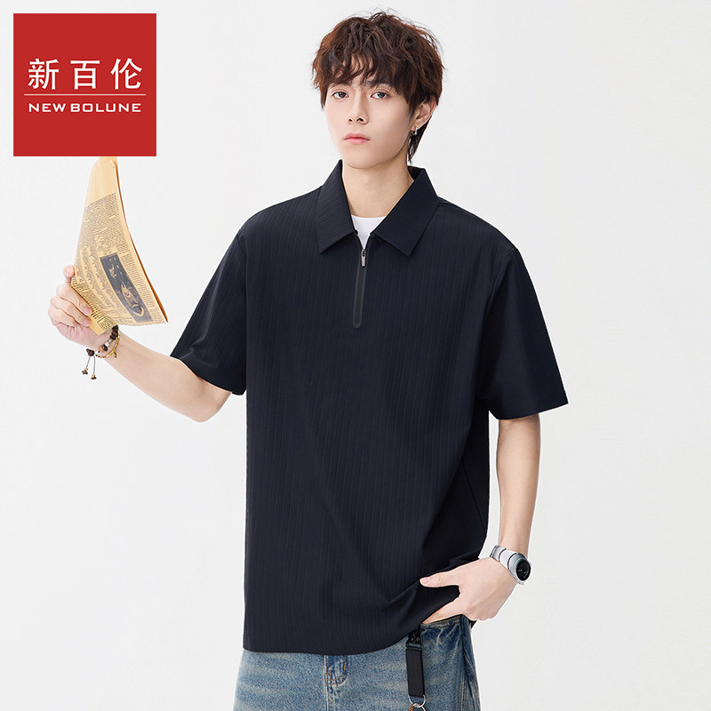 新百伦拉链套头短袖POLO衫男士2026夏季新款复古纯色五分袖上衣