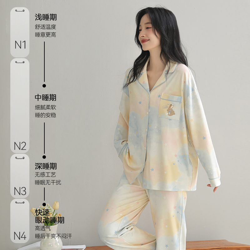 猫人女士纯棉睡衣女款2025新款春秋季长袖长裤可外穿家居服套装