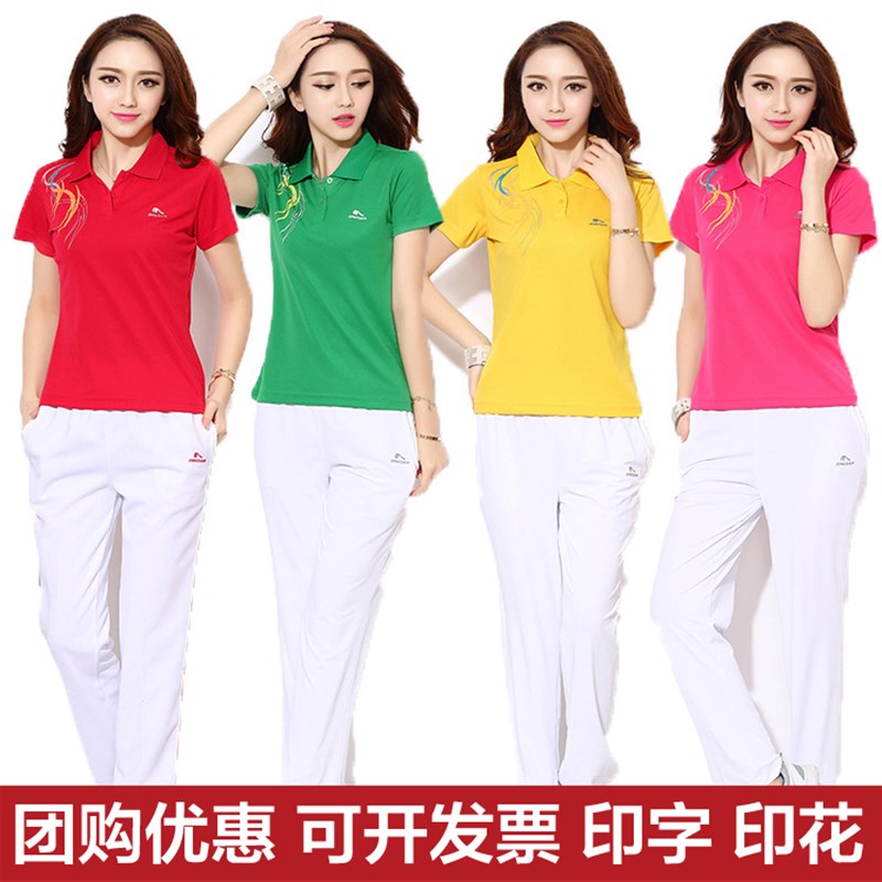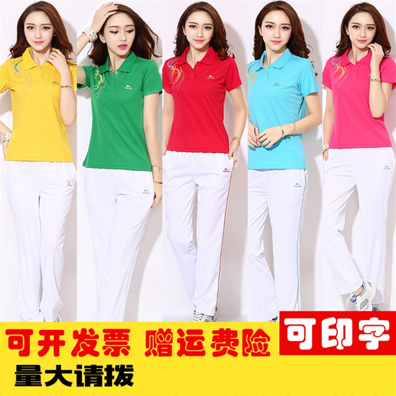 新品夏季佳木斯运o动套装短袖长裤大码T恤男女中老年广场舞团