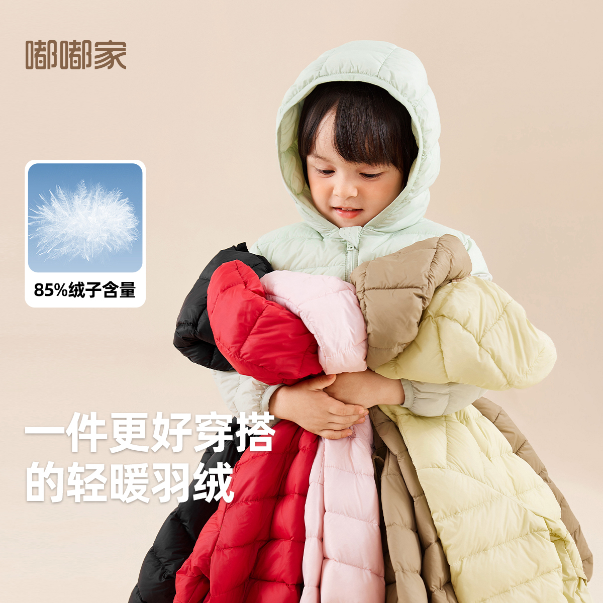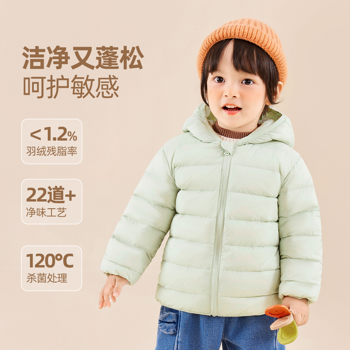 嘟嘟家儿童轻薄羽绒服冬季男童纯色连帽上衣女童保暖冬装洋气