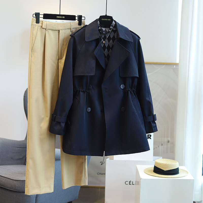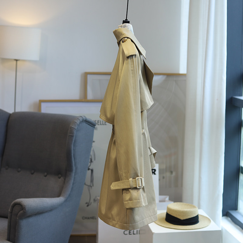 高端渠道货!日本JIN口面料气质休闲双排扣短款风衣外套女秋629F