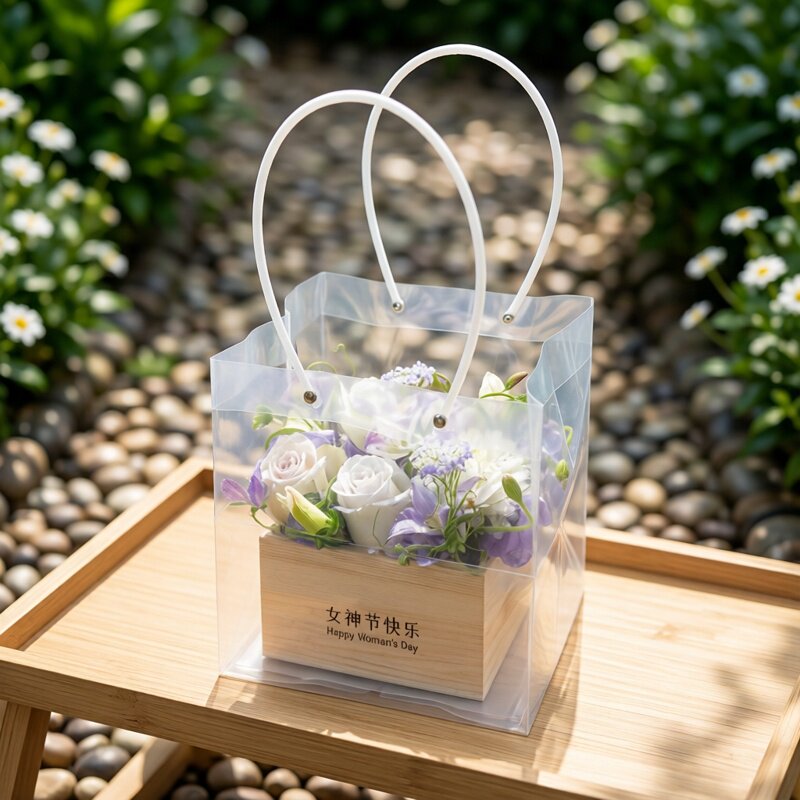 三八女神节快乐贴纸不干贴鲜花束小抱桶木盒礼盒装饰花艺手工diy