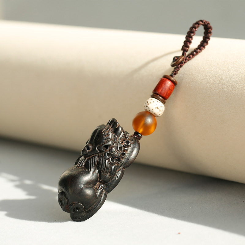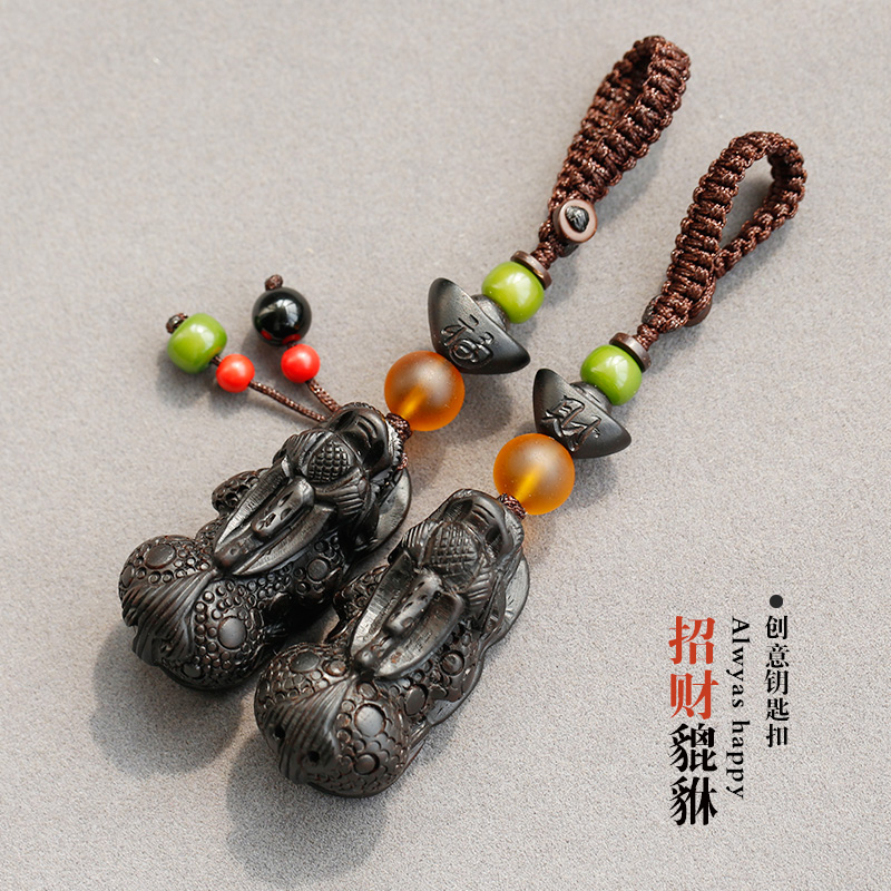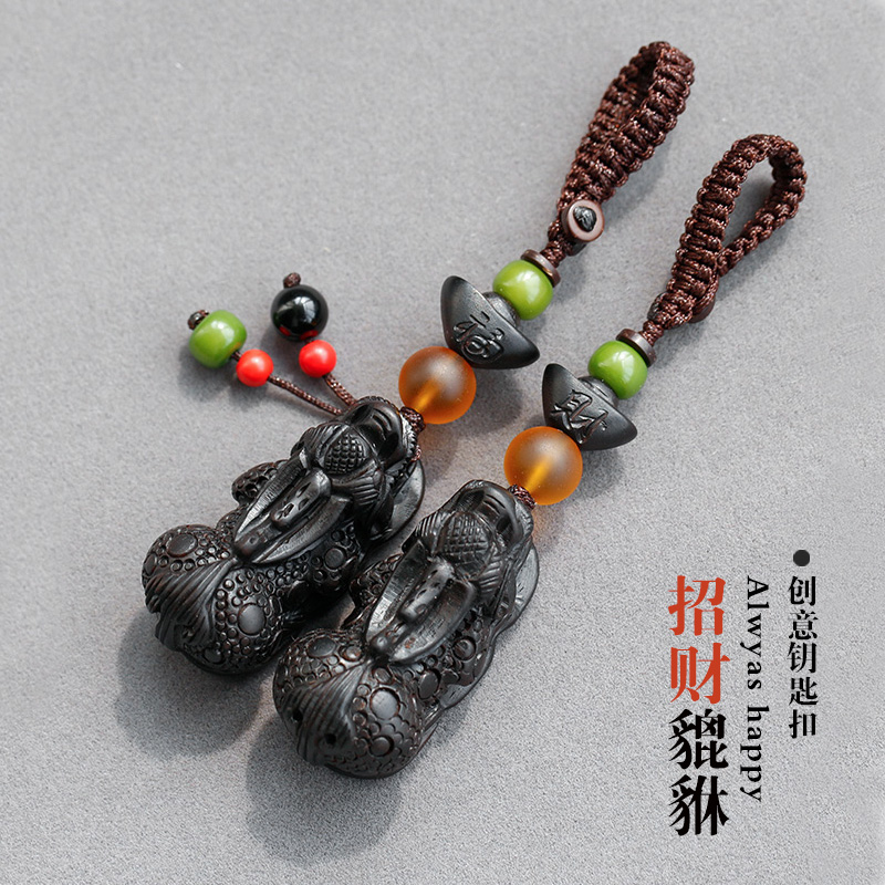 汽车钥匙扣男士招财貔貅高档檀木手工个性创意礼物挂件钥匙挂绳圈