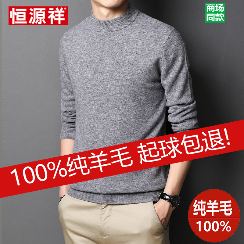 恒源祥100%纯羊毛衫男加厚半高领毛衣中年保暖冬季打底针织羊绒衫