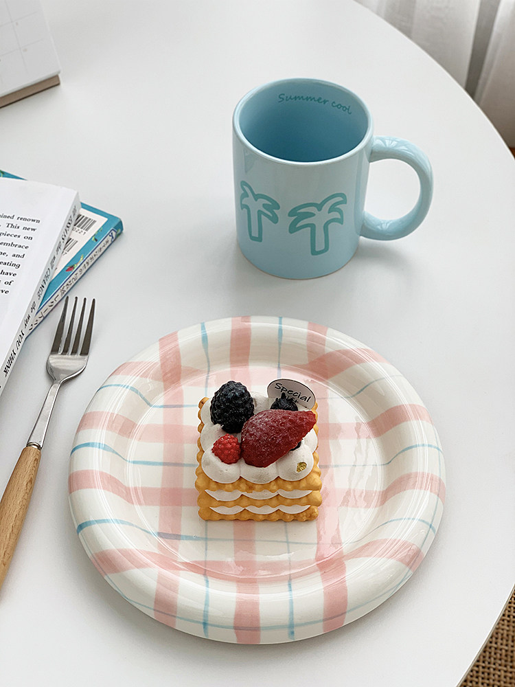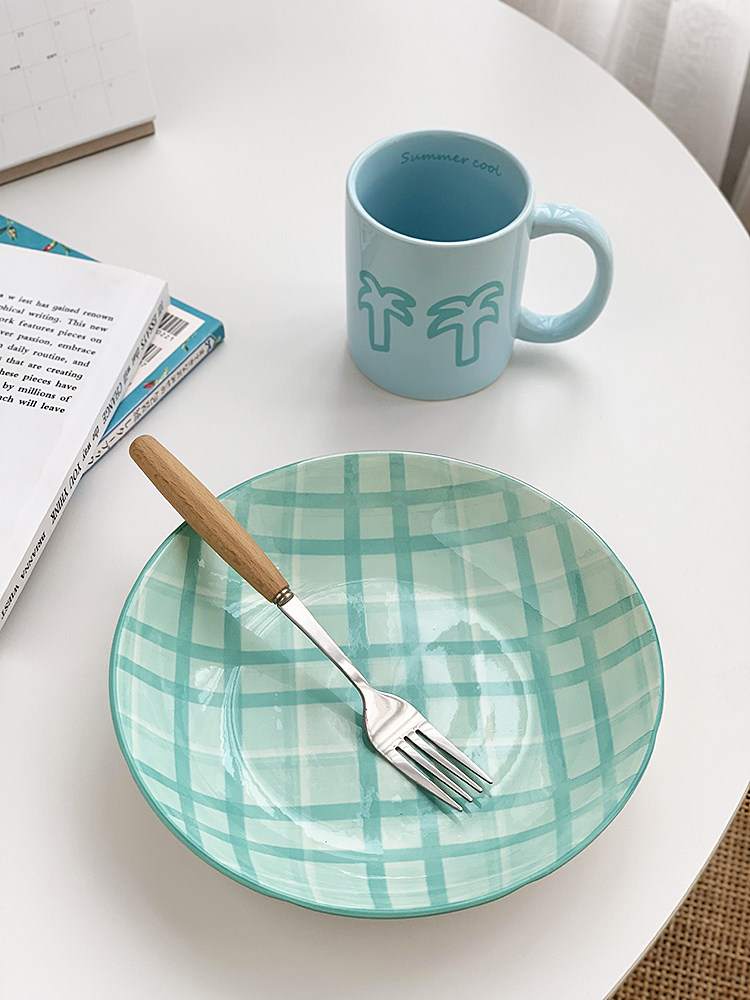 安木良品 大厂订单 韩国ins夏季清新蓝色椰树涂鸦陶瓷杯子马克杯