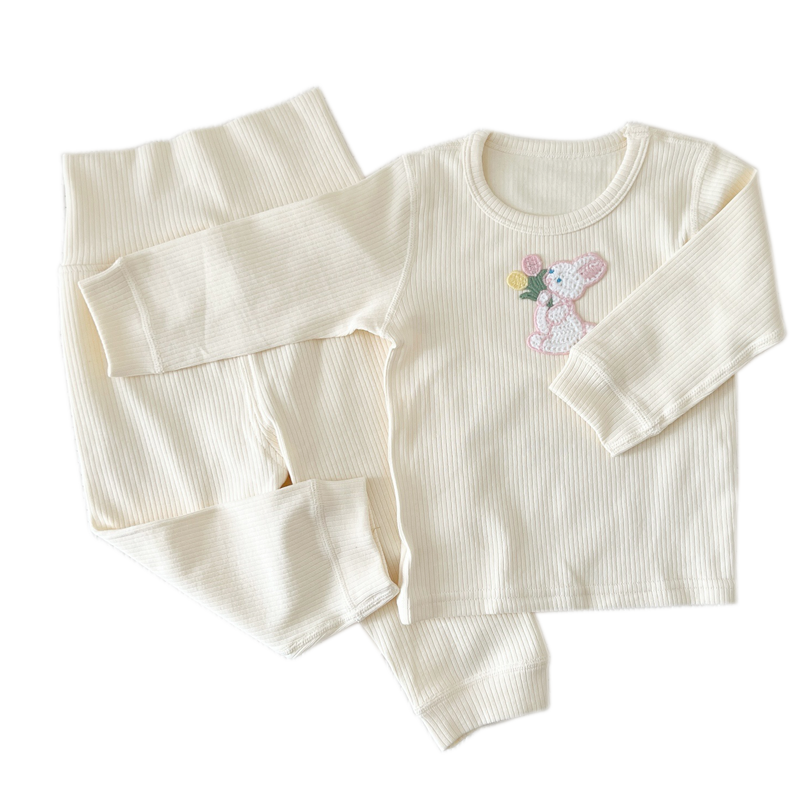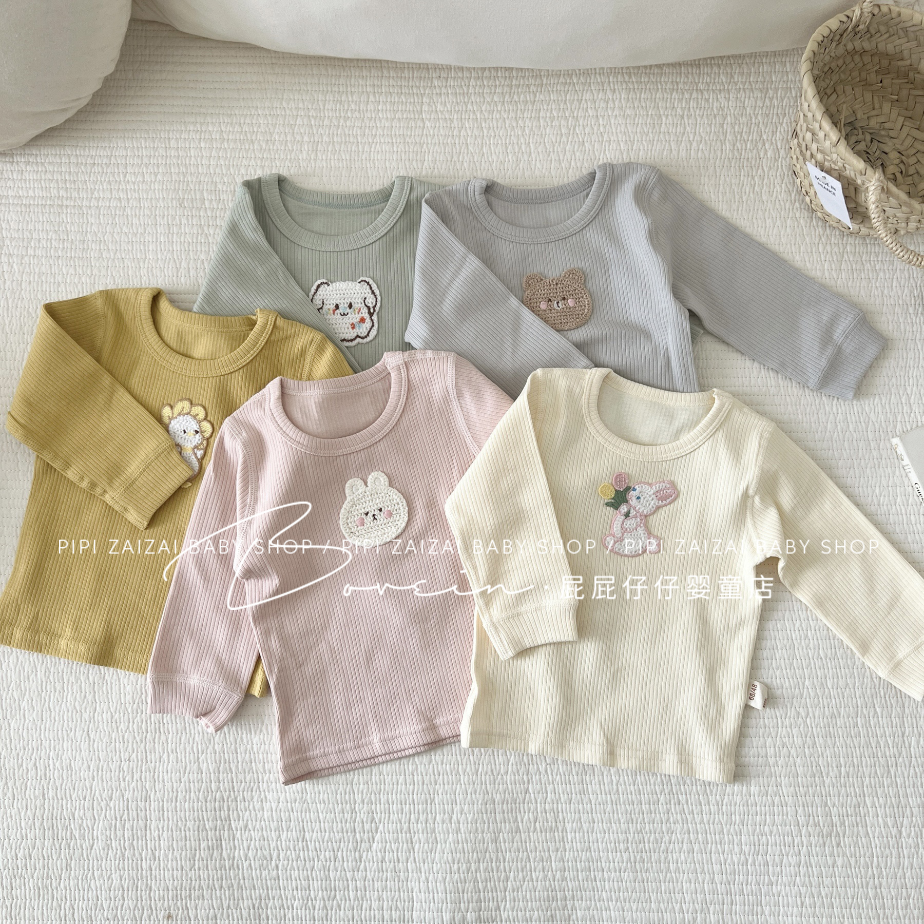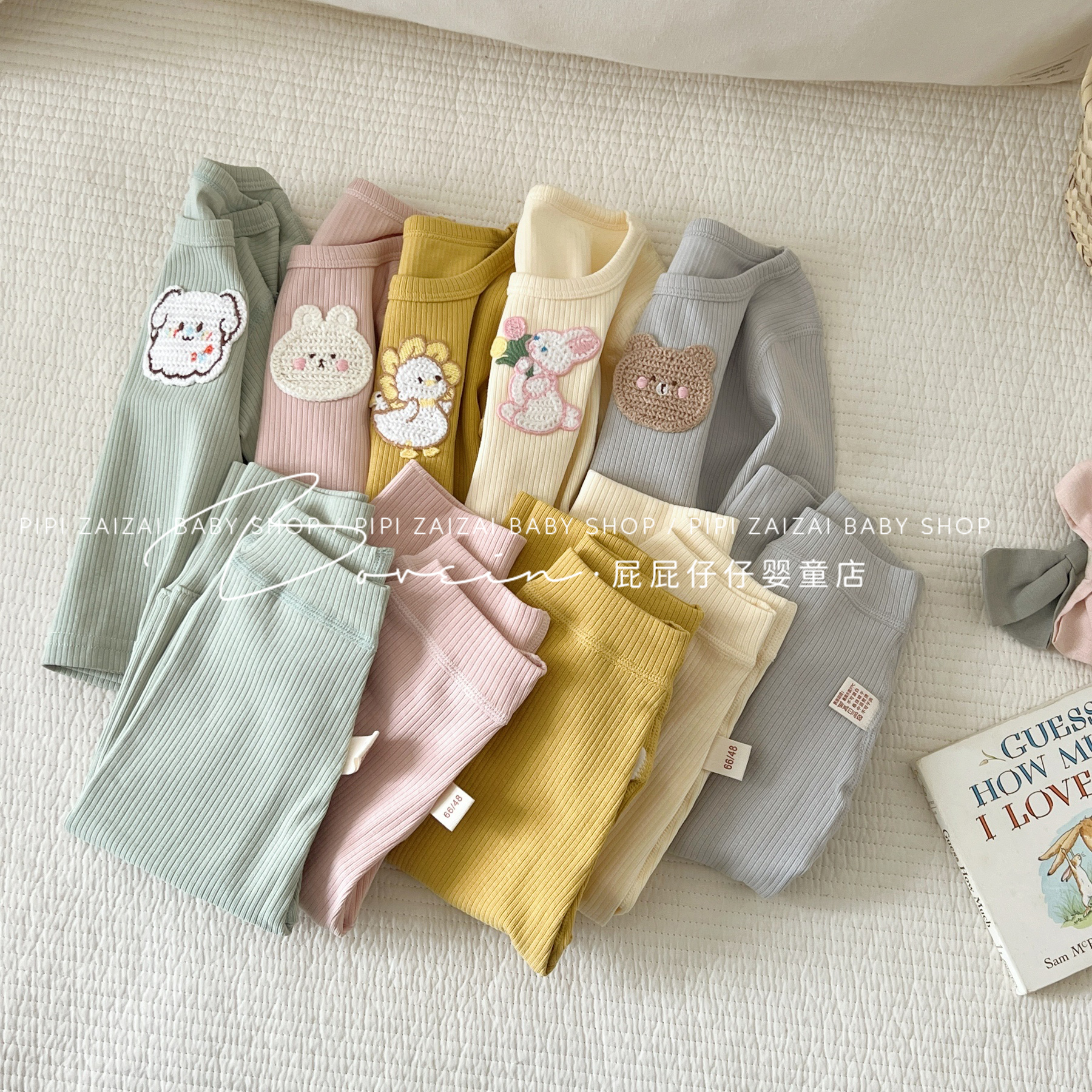 秋季婴儿纯棉坑条内衣套装高腰护肚套装男童女宝宝A类居家服秋衣